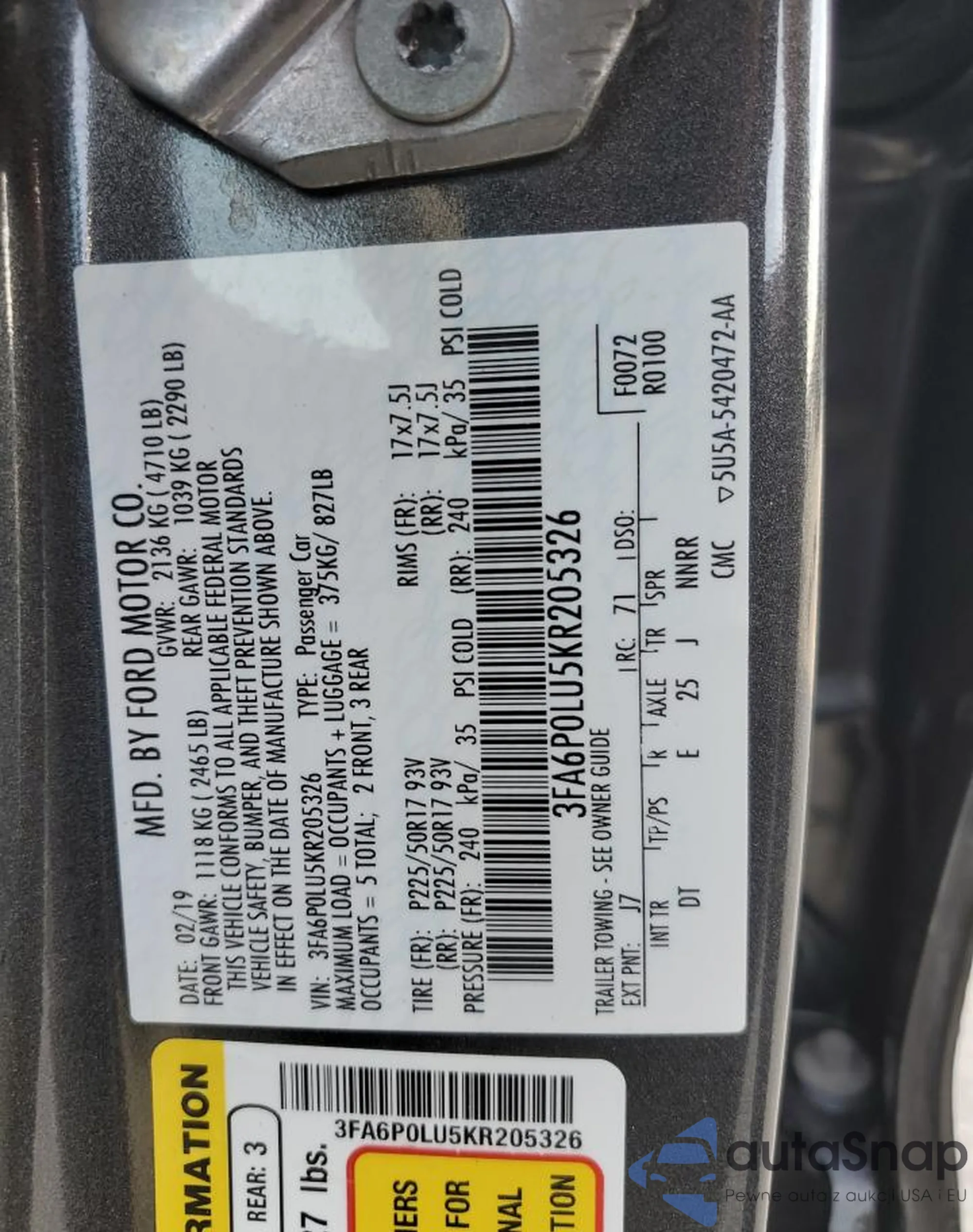 • VIN 3FA6P0LU5KR205326
