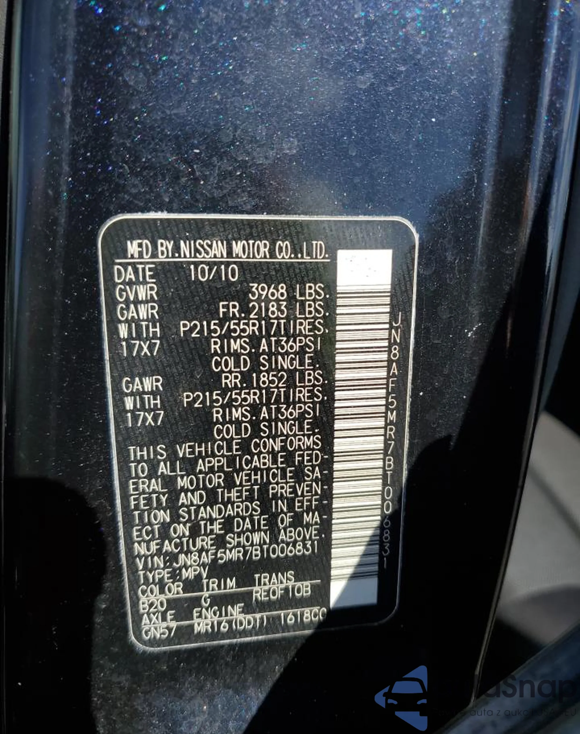 • VIN JN8AF5MR7BT006831