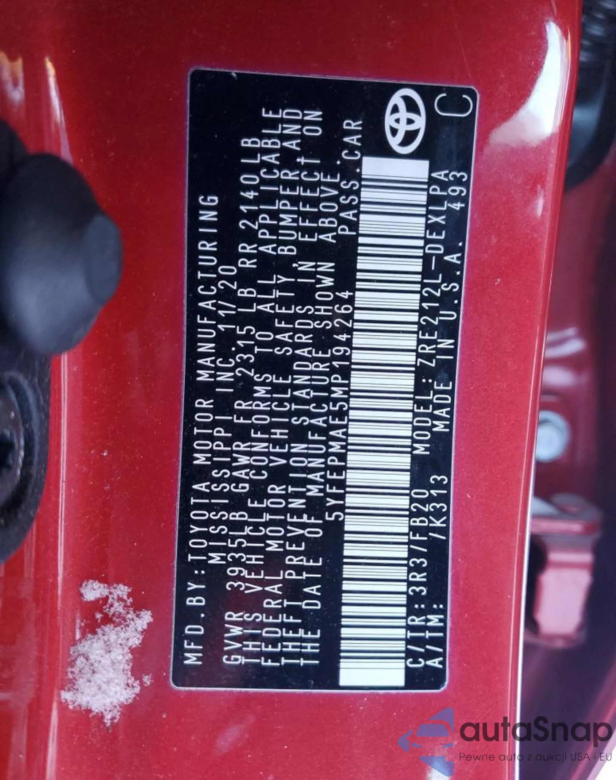 LOT: 89376315 VIN: 5YFEPMAE5MP194264