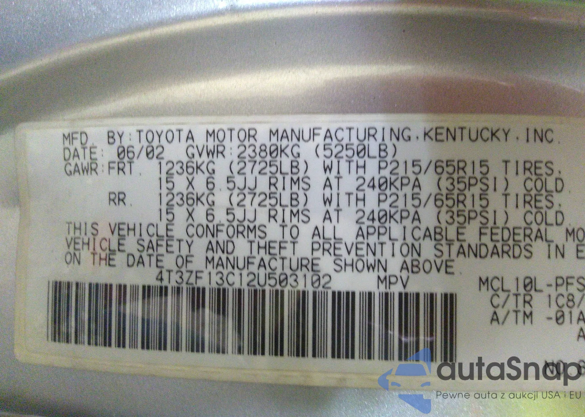 • VIN 4T1BK3EK6AU599247