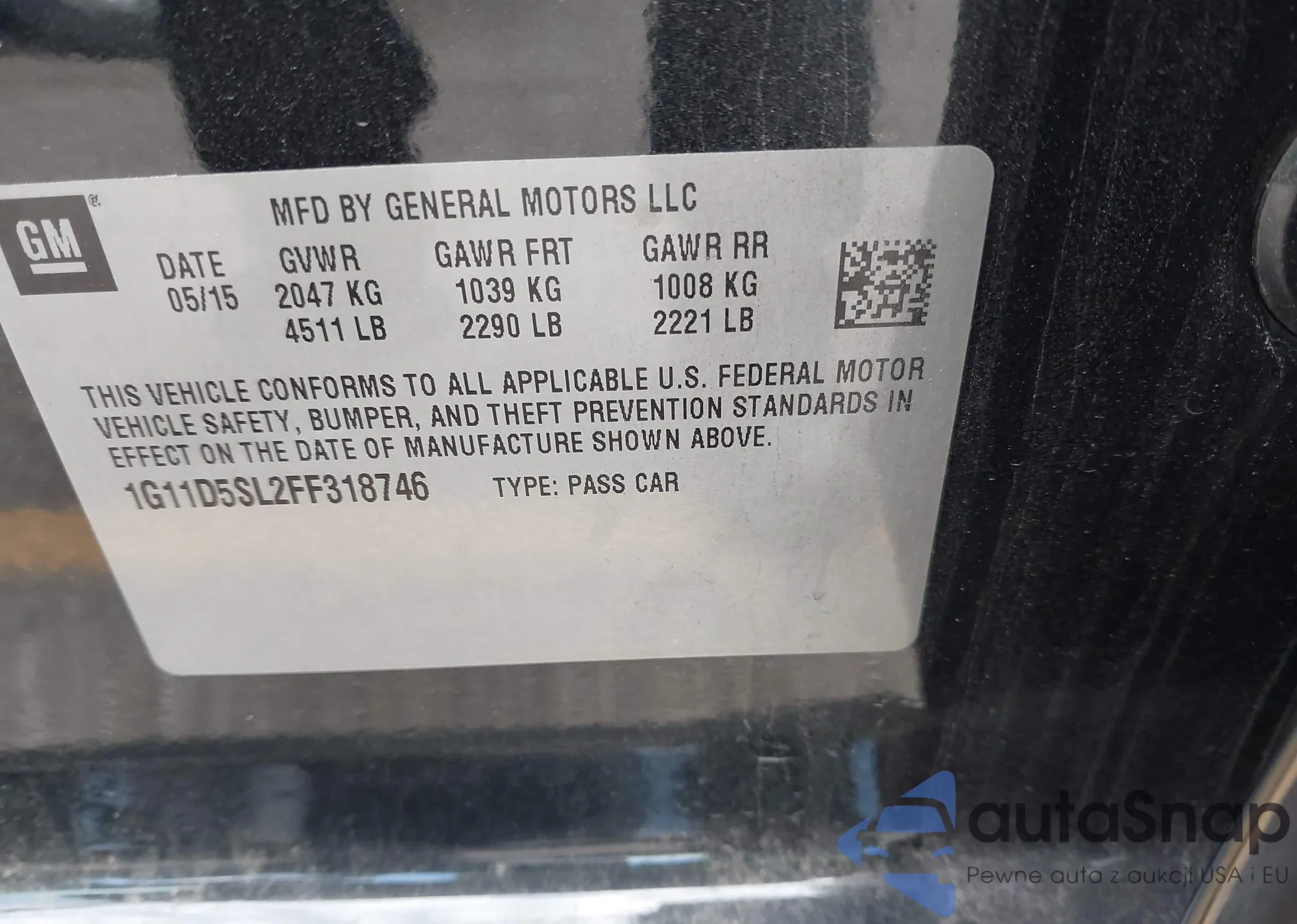 • VIN 1G11D5SL2FF318746