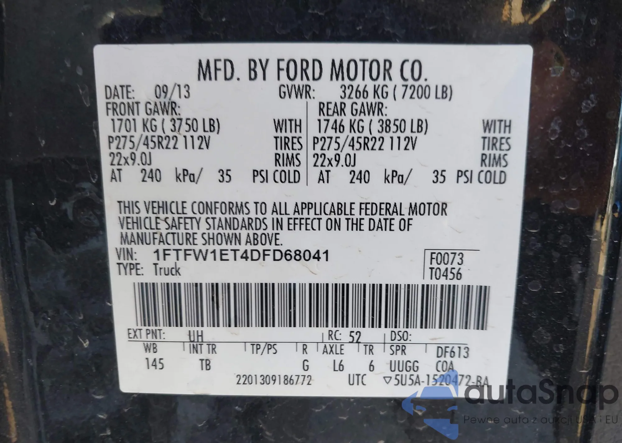 • VIN 1FTFW1ET4DFD68041