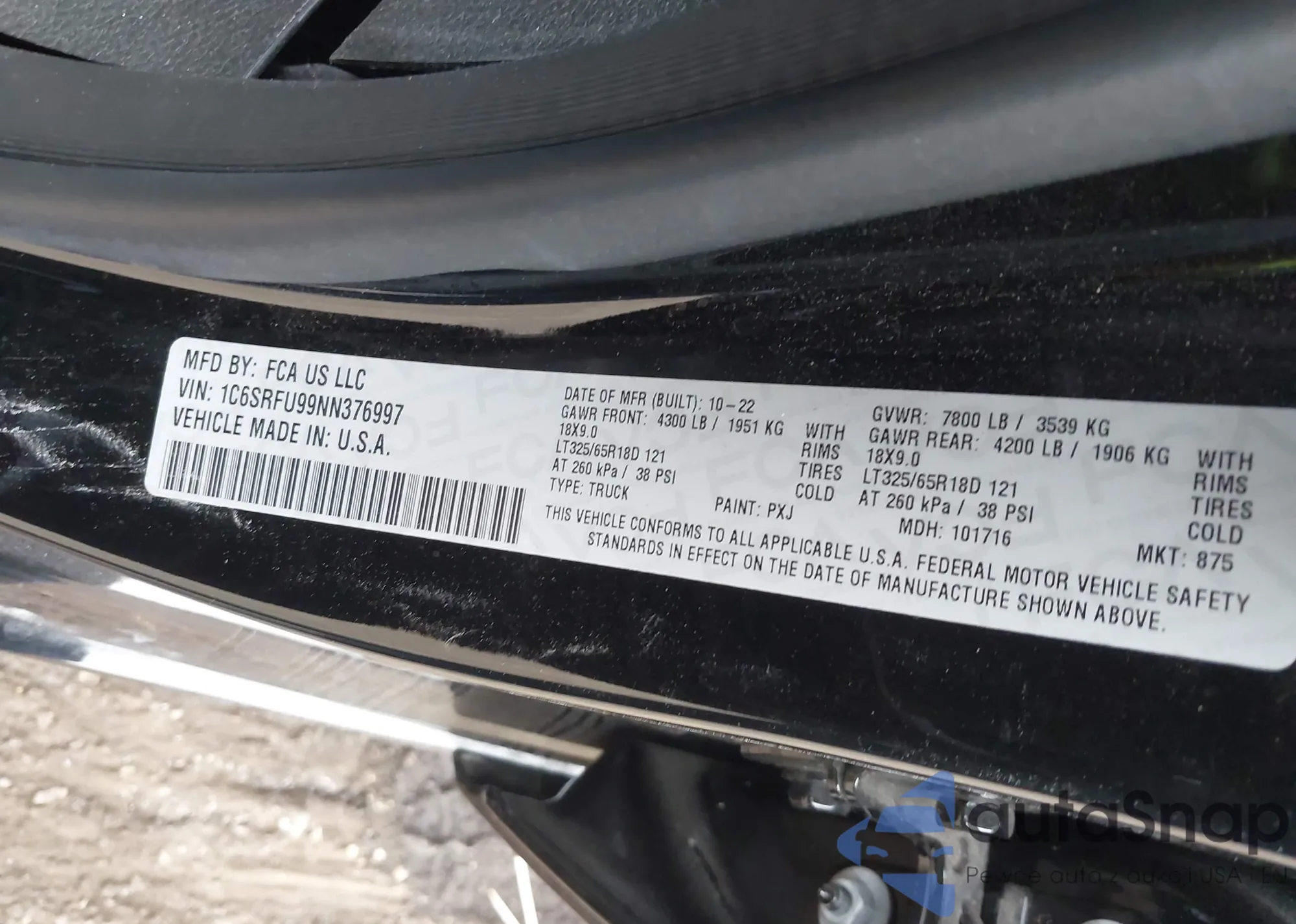 • VIN 1C6SRFU99NN376997