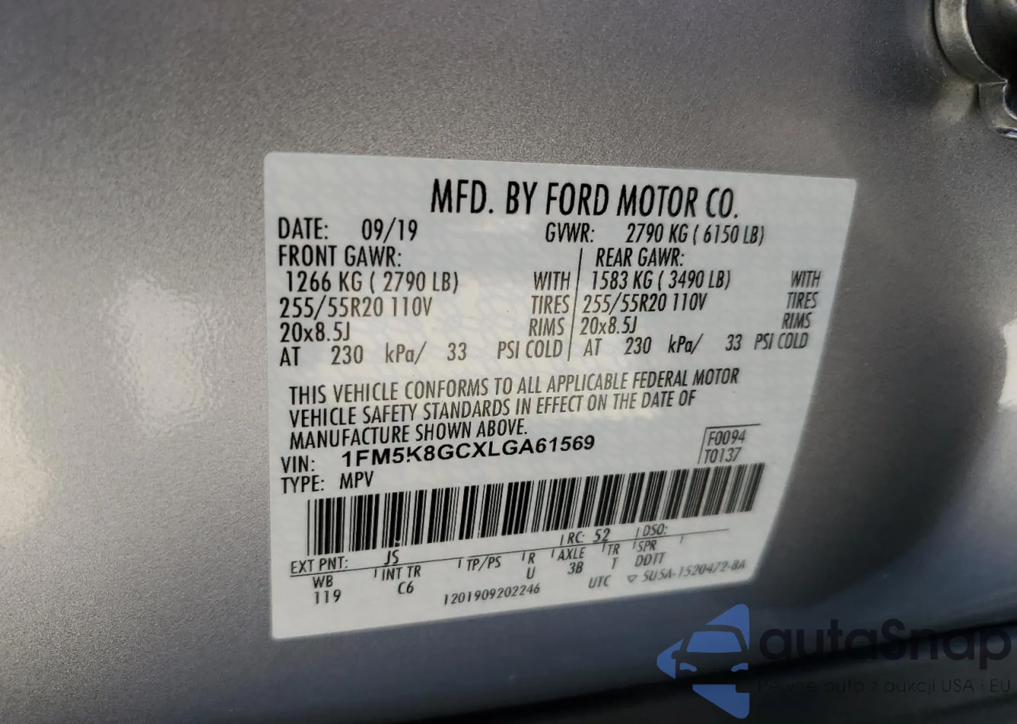 • VIN 1FM5K8GCXLGA61569