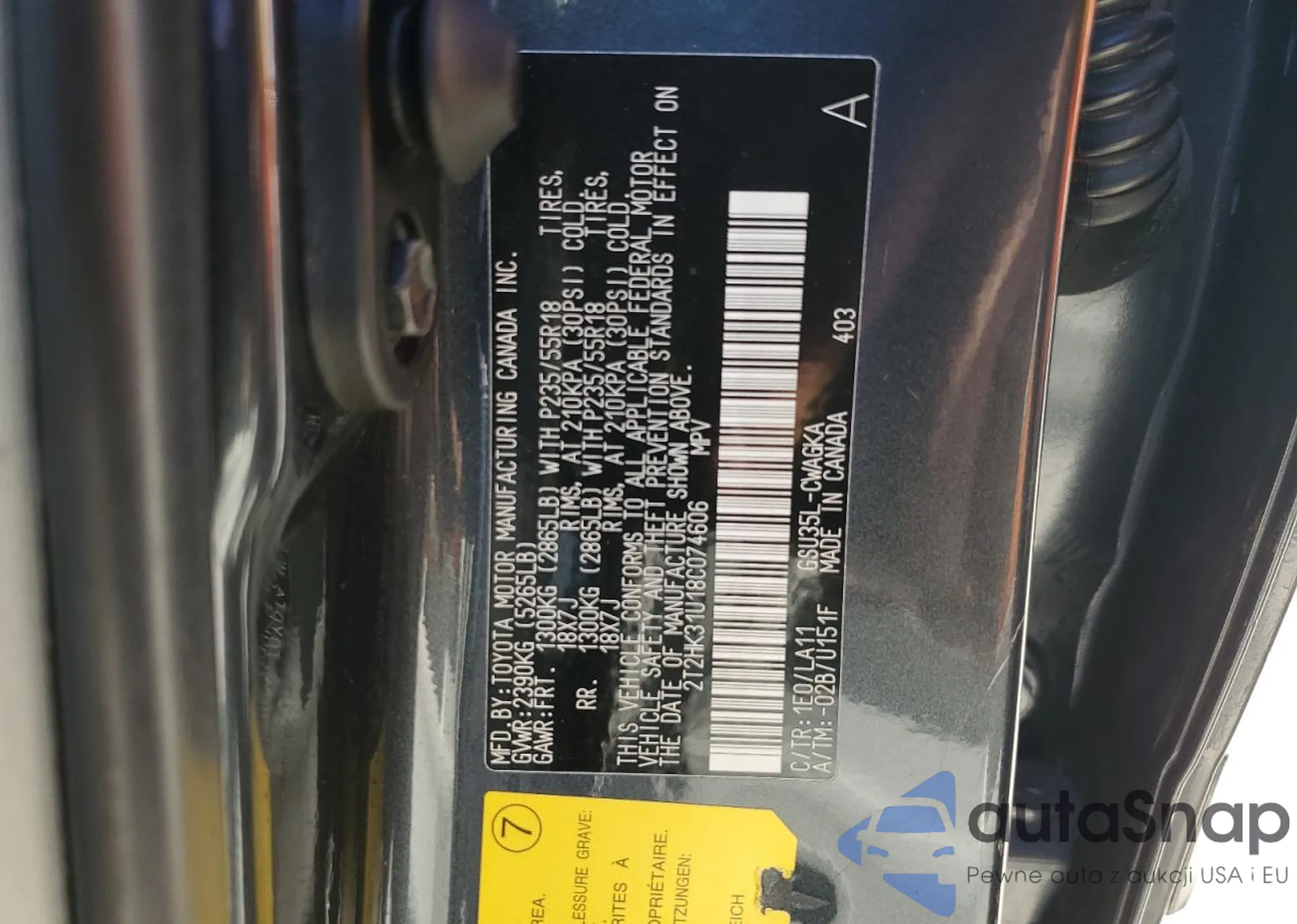 LOT: 81545764 VIN: 2T2HK31U18C074606