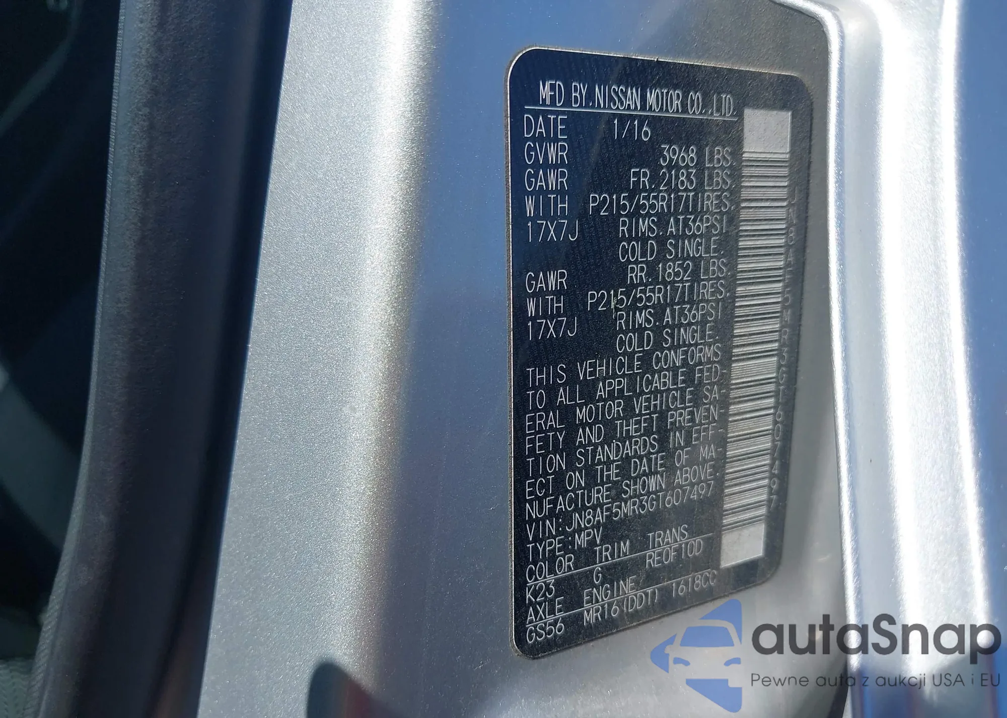 LOT: 41779024 VIN: JN8AF5MR3GT607497