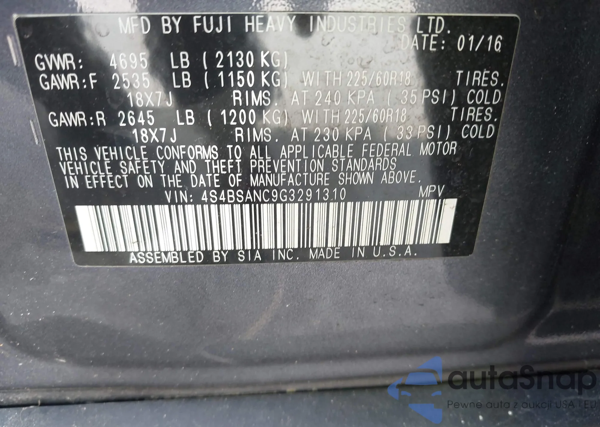 • VIN 4S4BSANC9G3291310