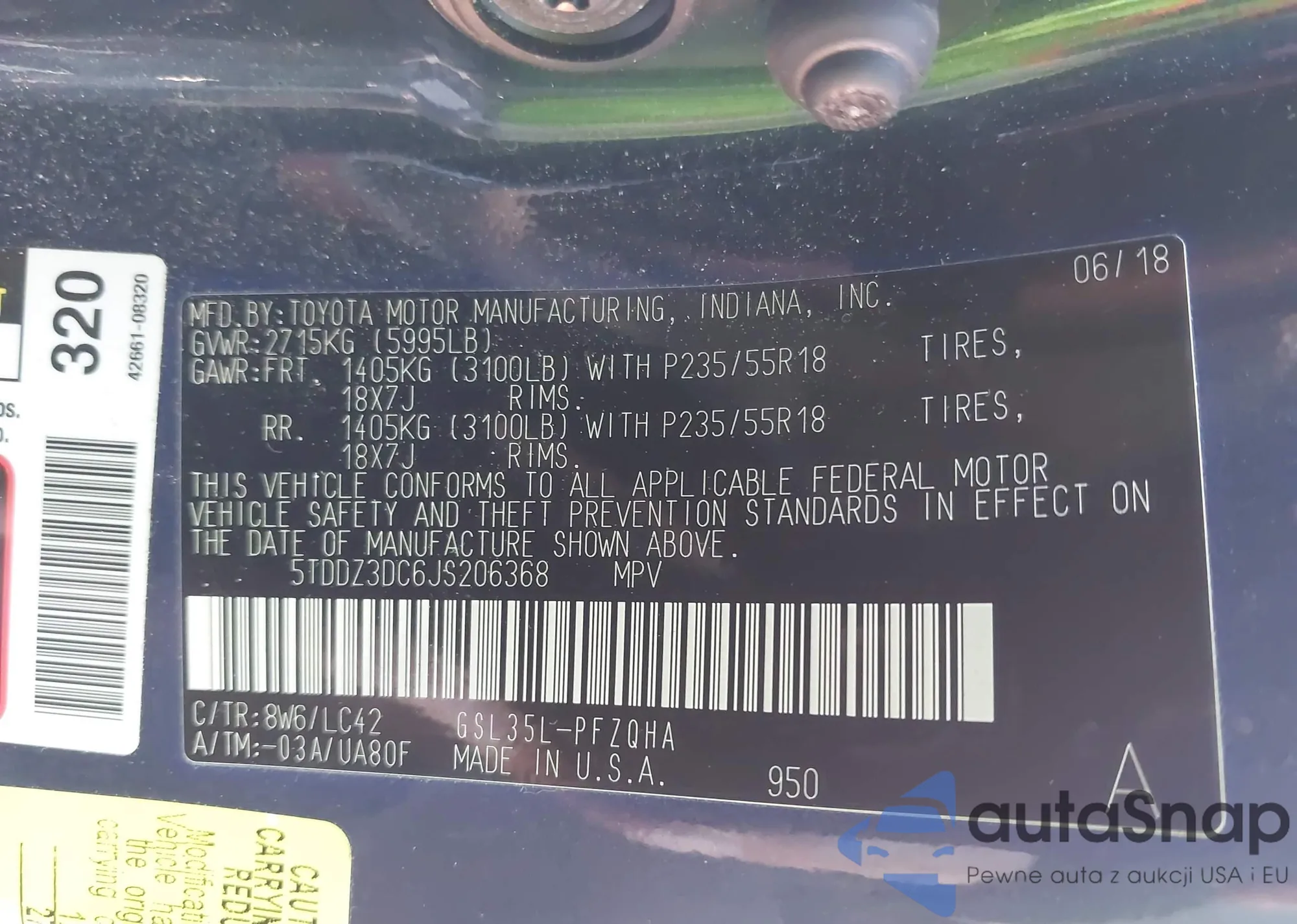 • VIN 5TDDZ3DC6JS206368
