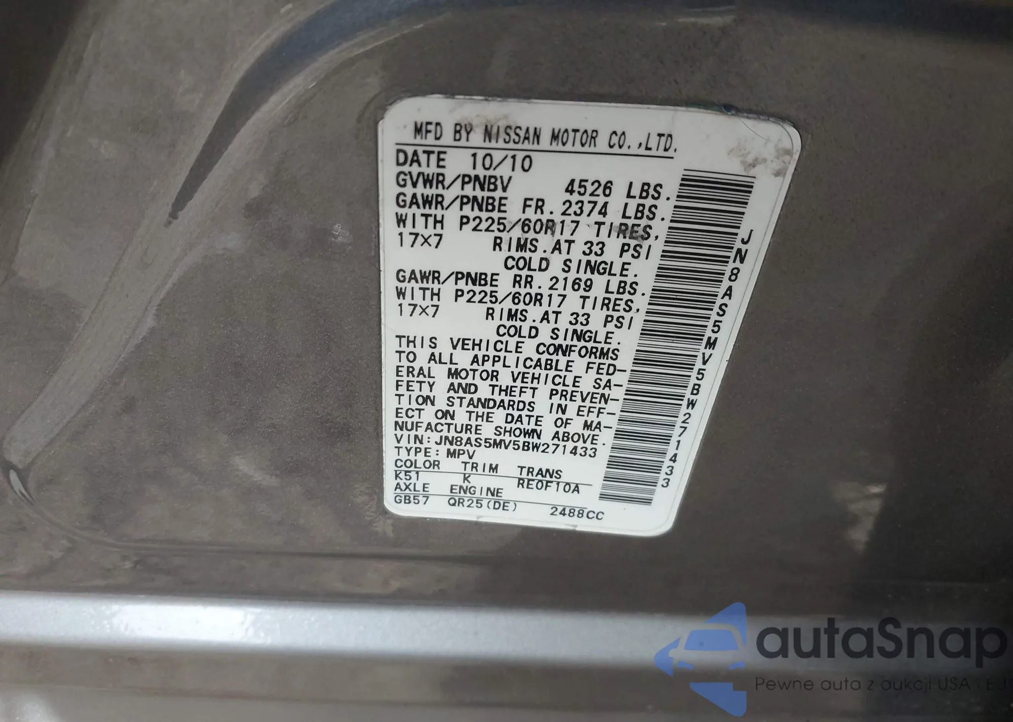 • VIN JN8AS5MV5BW271433