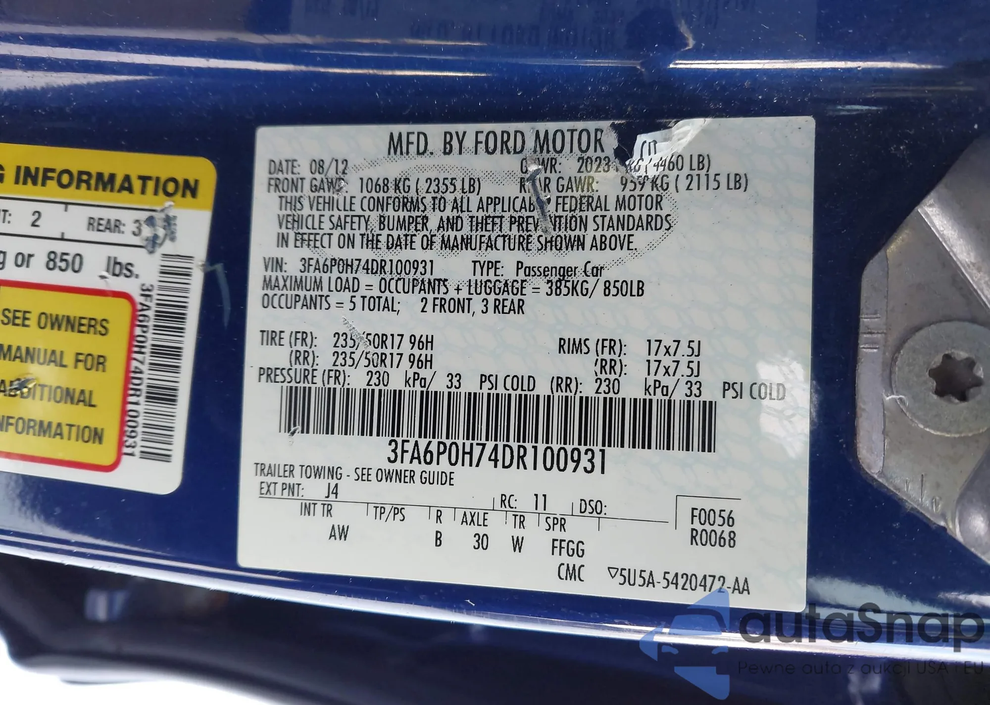 • VIN 3FA6P0H74DR100931