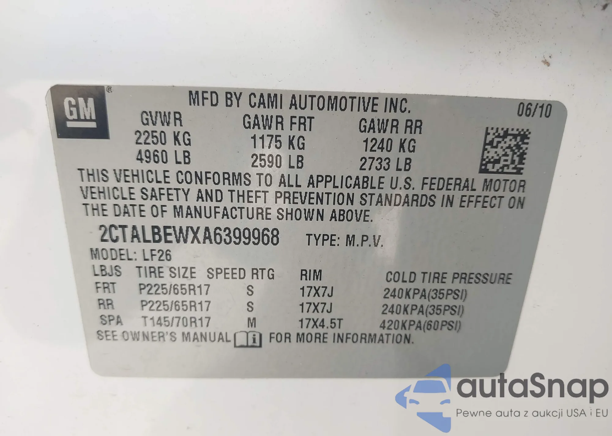 • VIN 2CTALBEWXA6399968