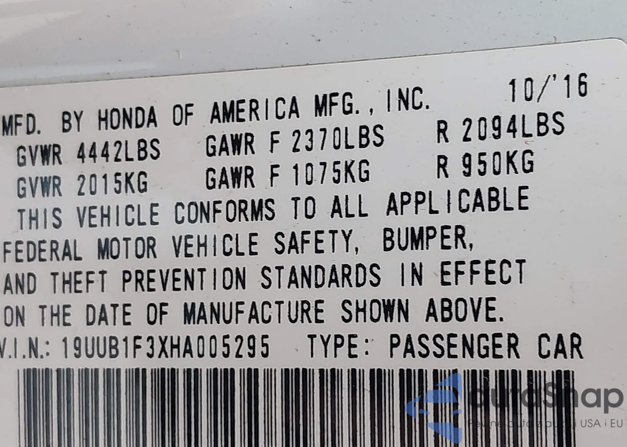 • VIN 5FNYF6H70GB009055