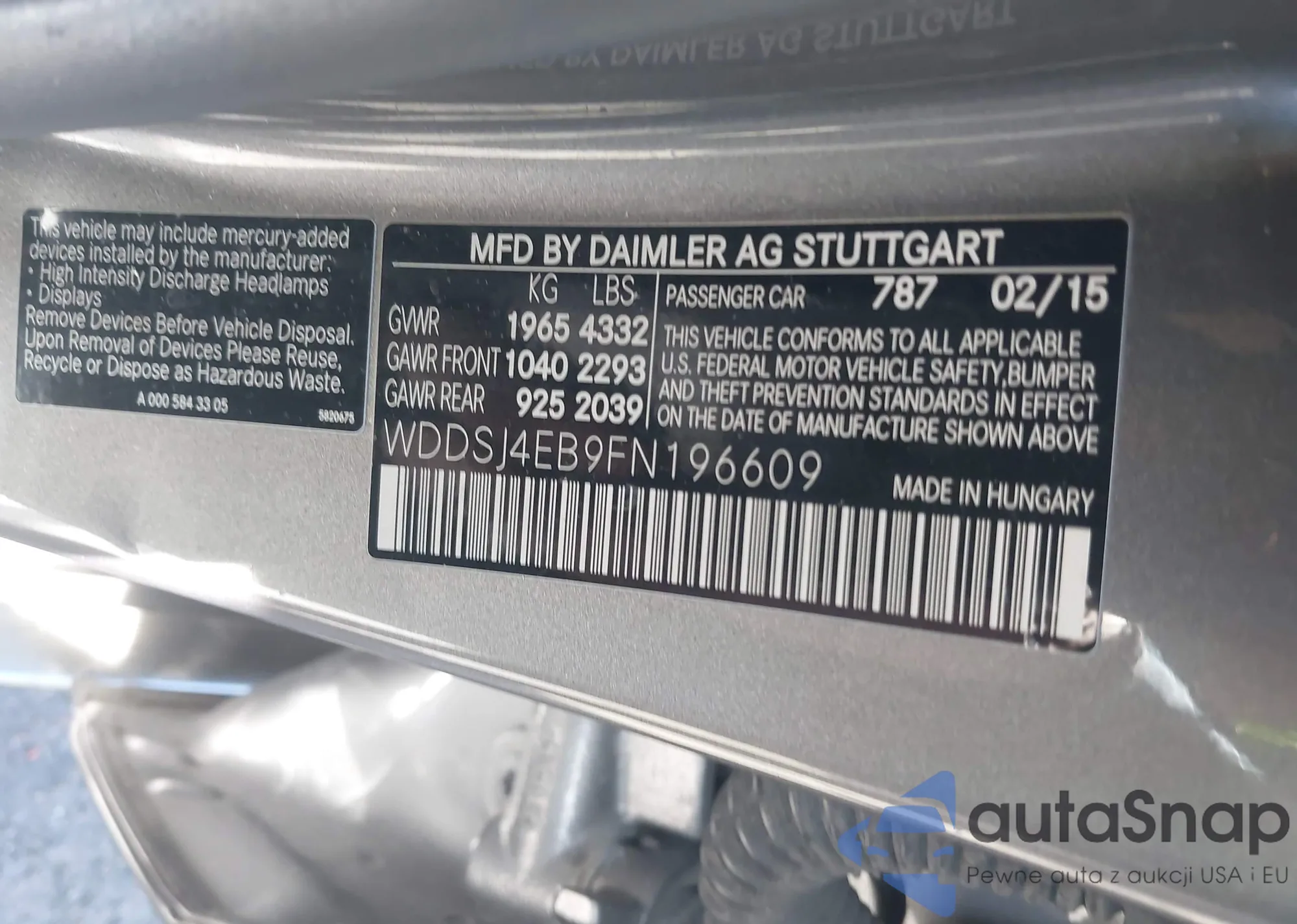 LOT: 41690937 VIN: WDDSJ4EB9FN196609