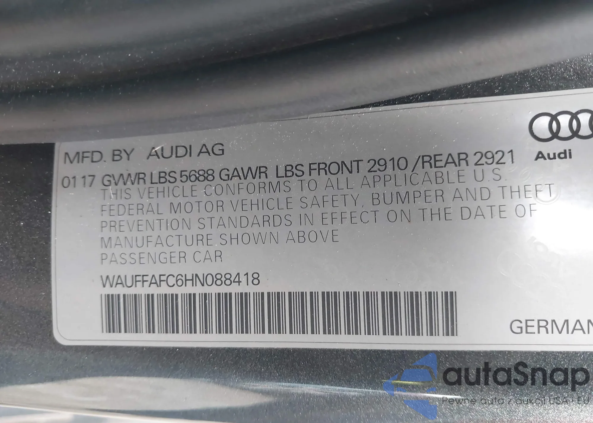 LOT: 41346747 VIN: WAUFFAFC6HN088418