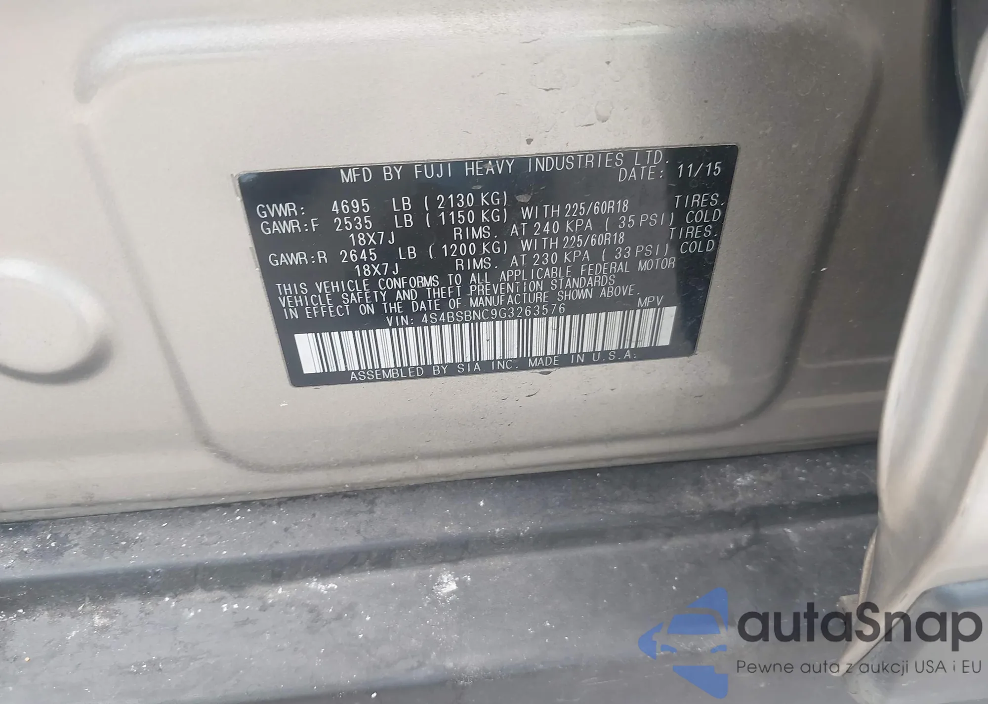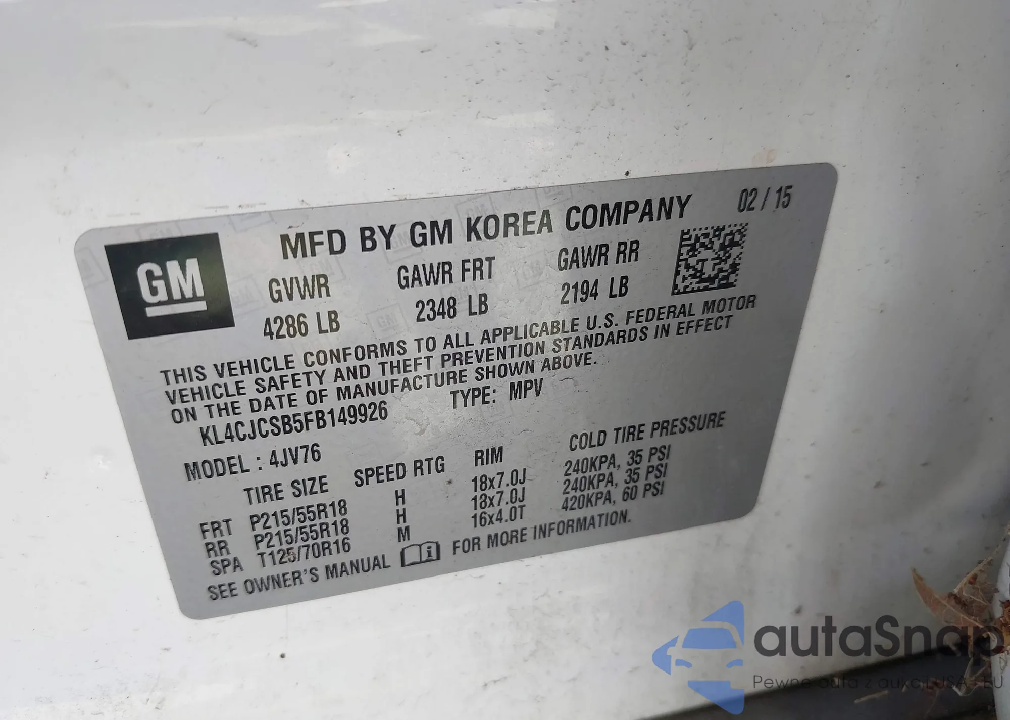 • VIN KL4CJCSB5FB149926