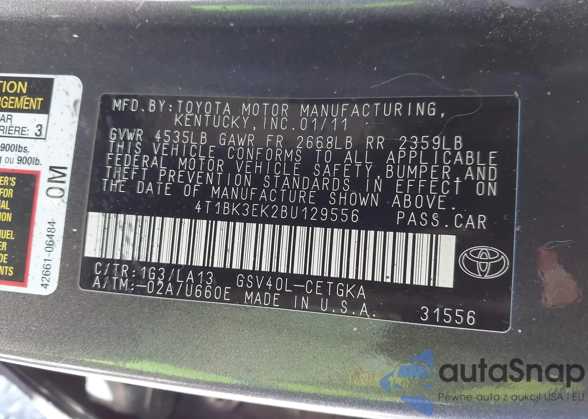 LOT: 41701798 VIN: 4T1BK3EK2BU129556