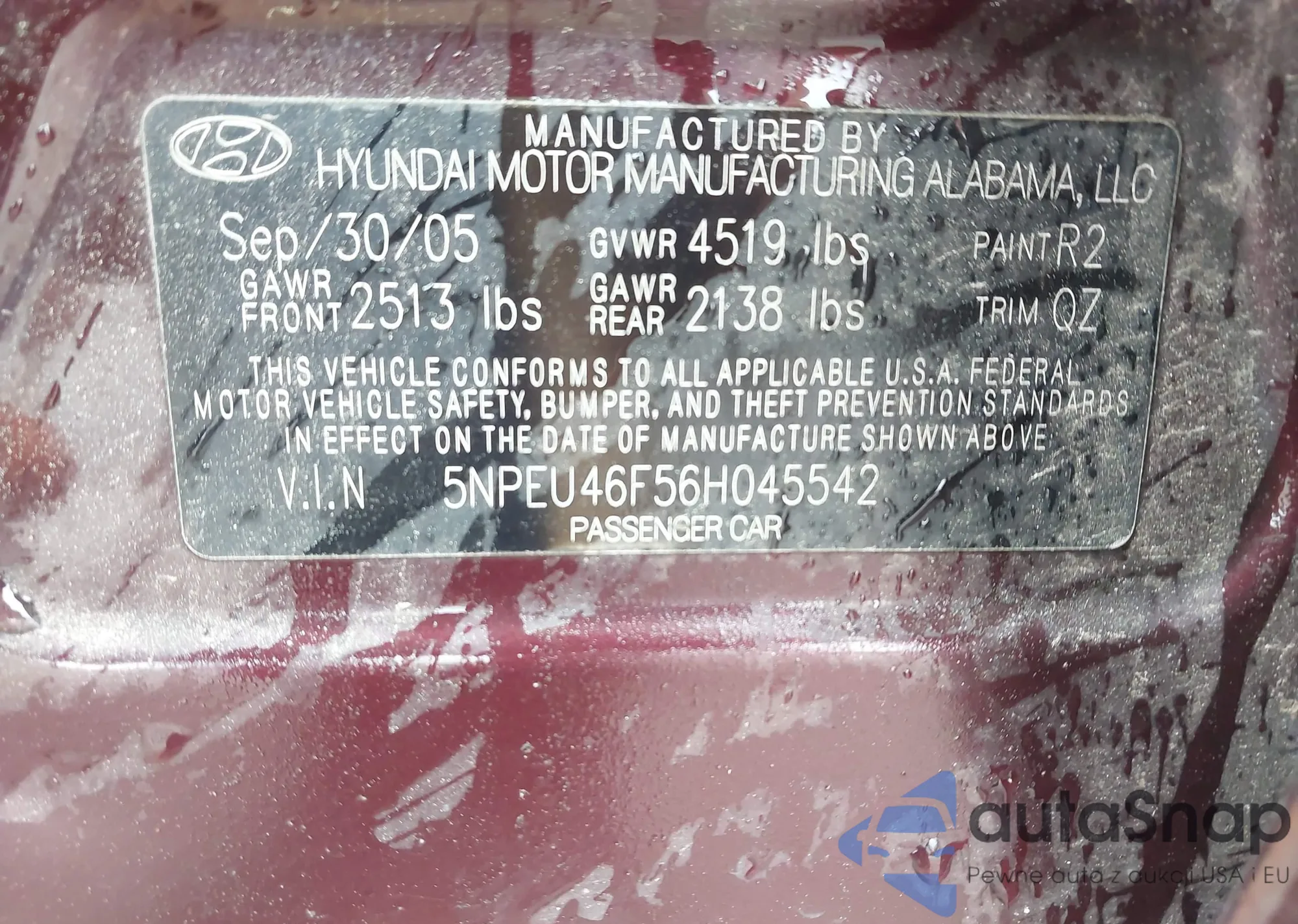 • VIN 5NPEU46F56H045542
