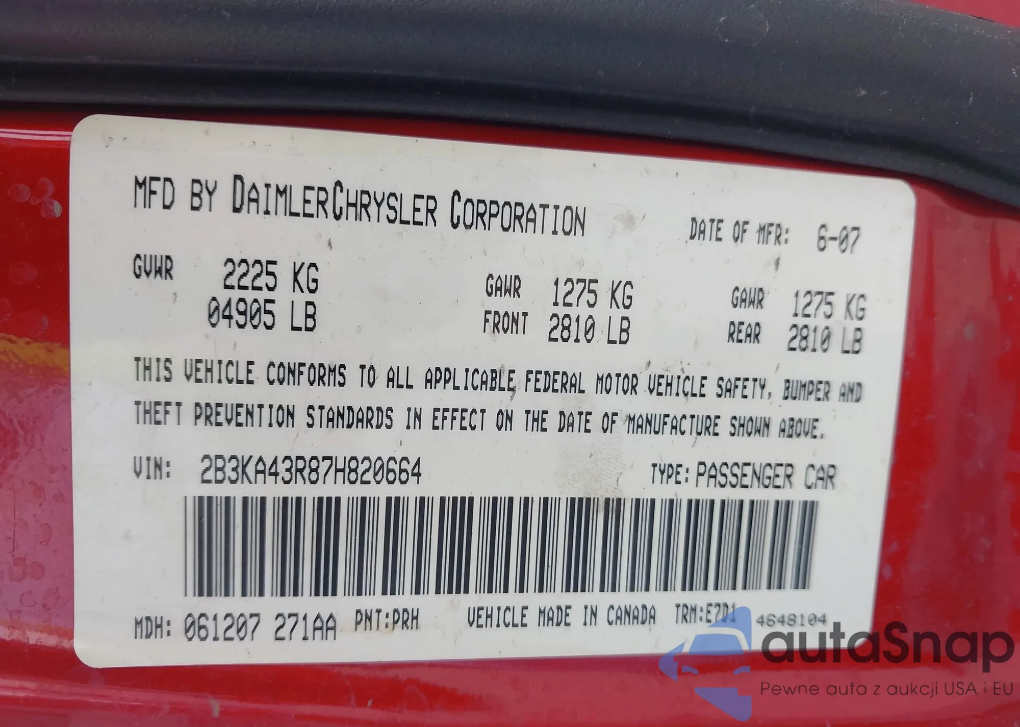 • VIN 2B3KA43R87H820664