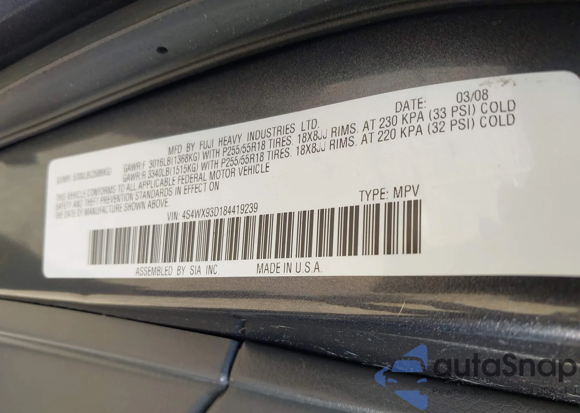 • VIN 4S4WX93D184419239