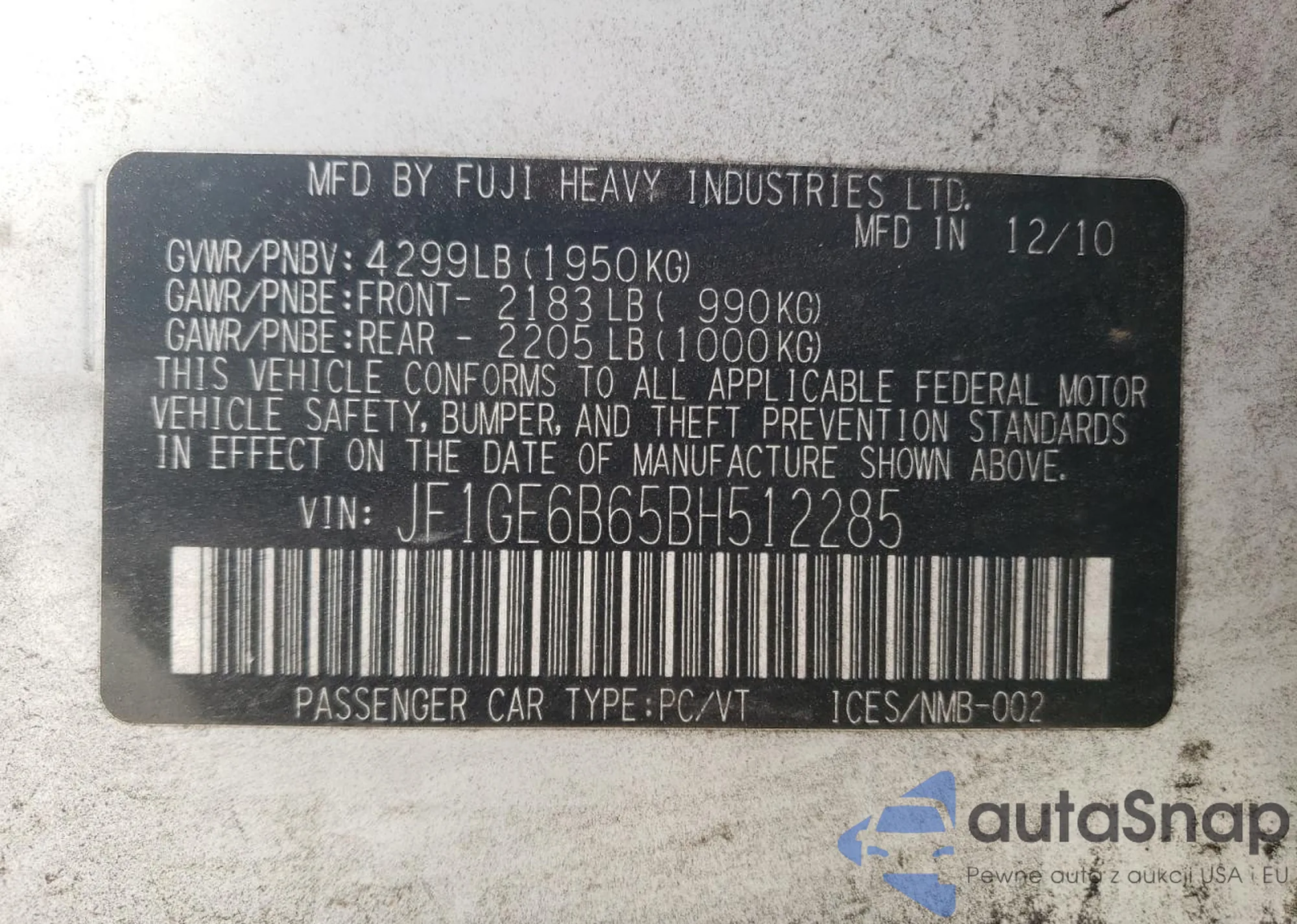 • VIN 4T1B11HK7KU681959