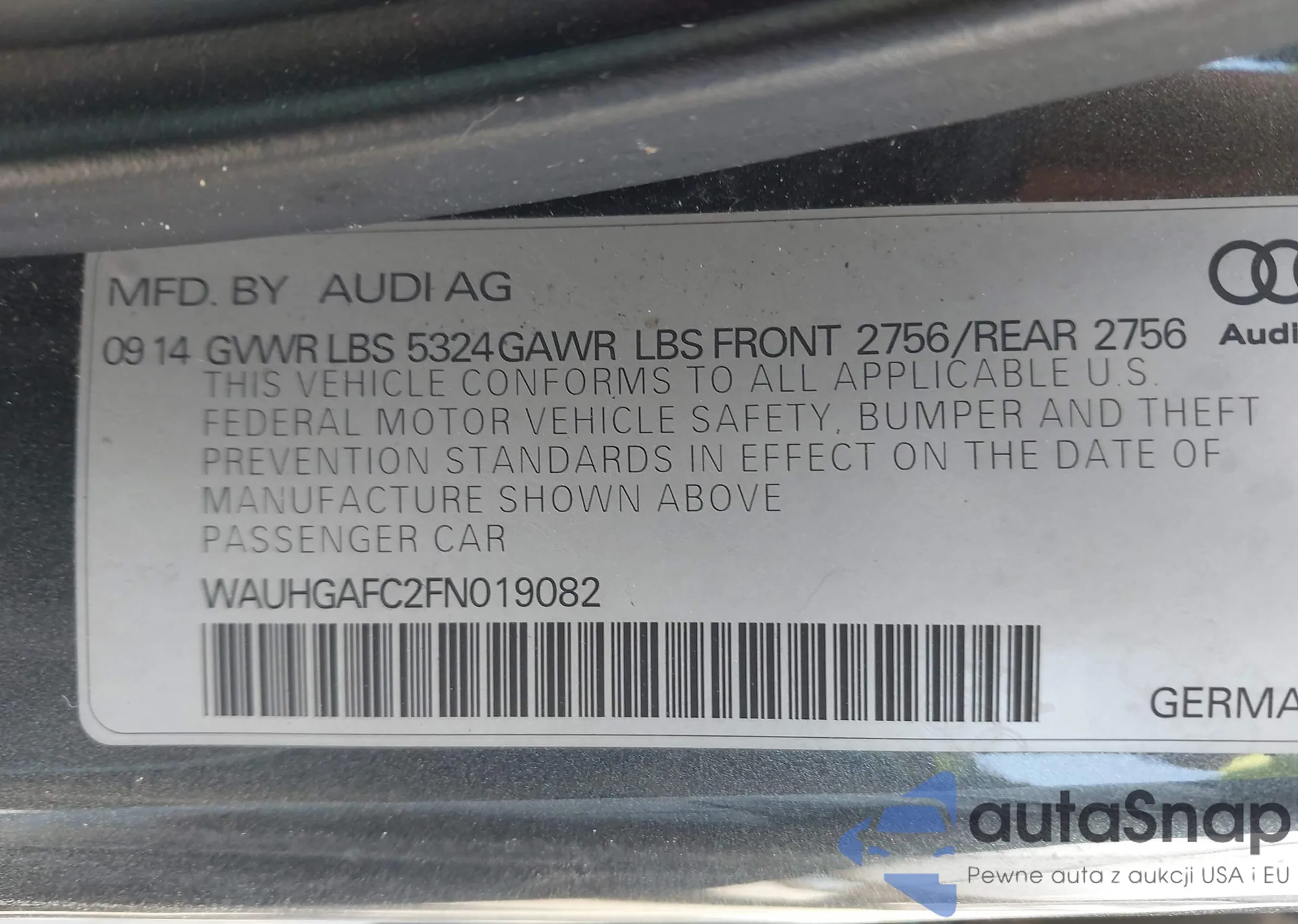 • VIN WAUHGAFC2FN019082