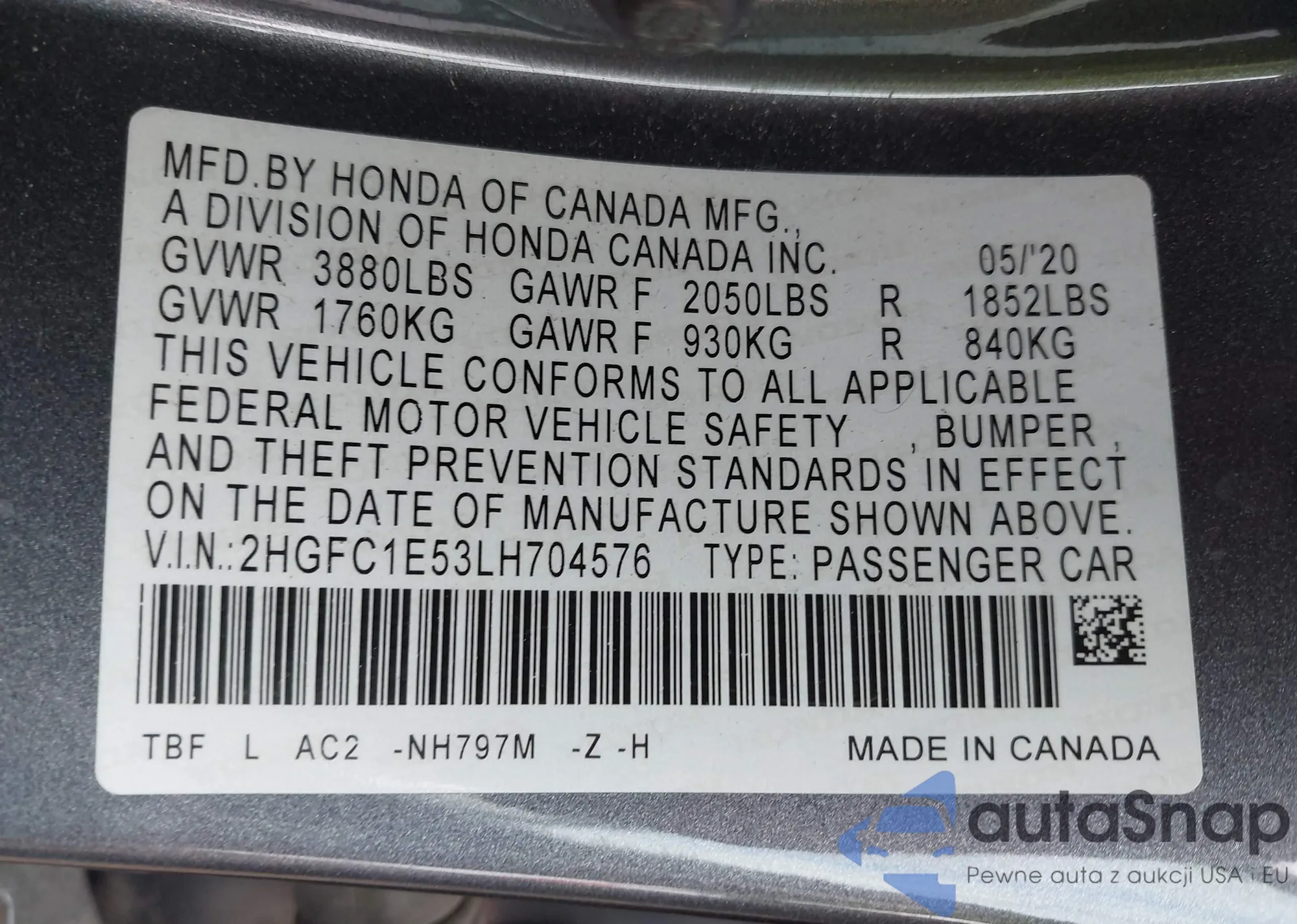 • VIN 1HGCV2F92JA032736