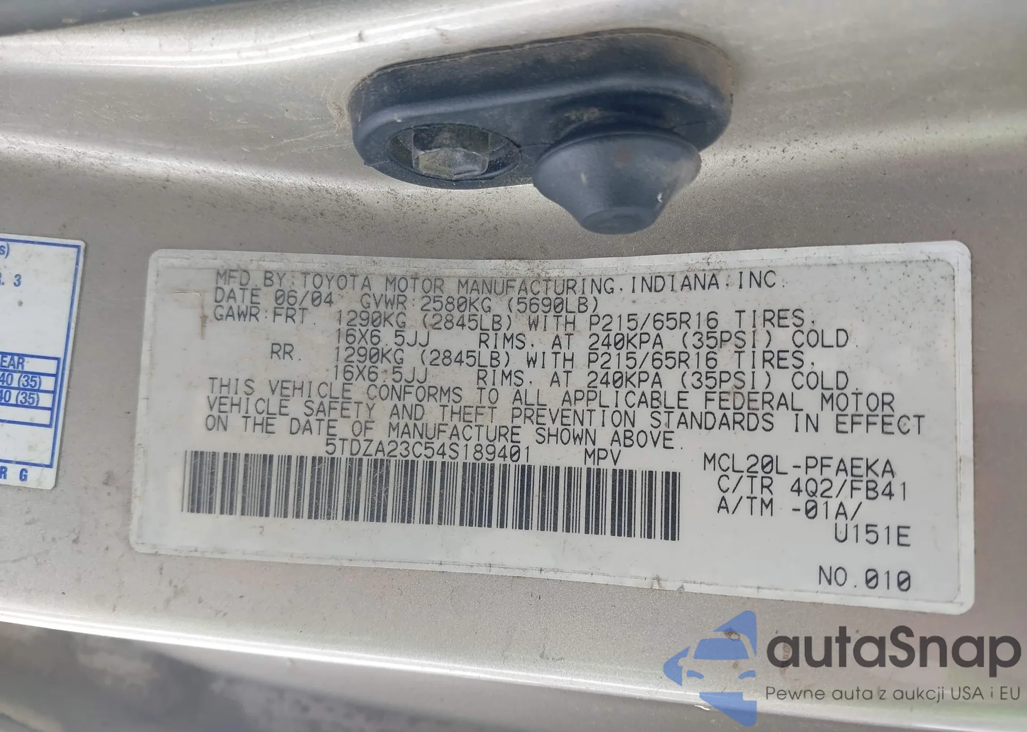 LOT: 41682413 VIN: 5TDZA23C54S189401