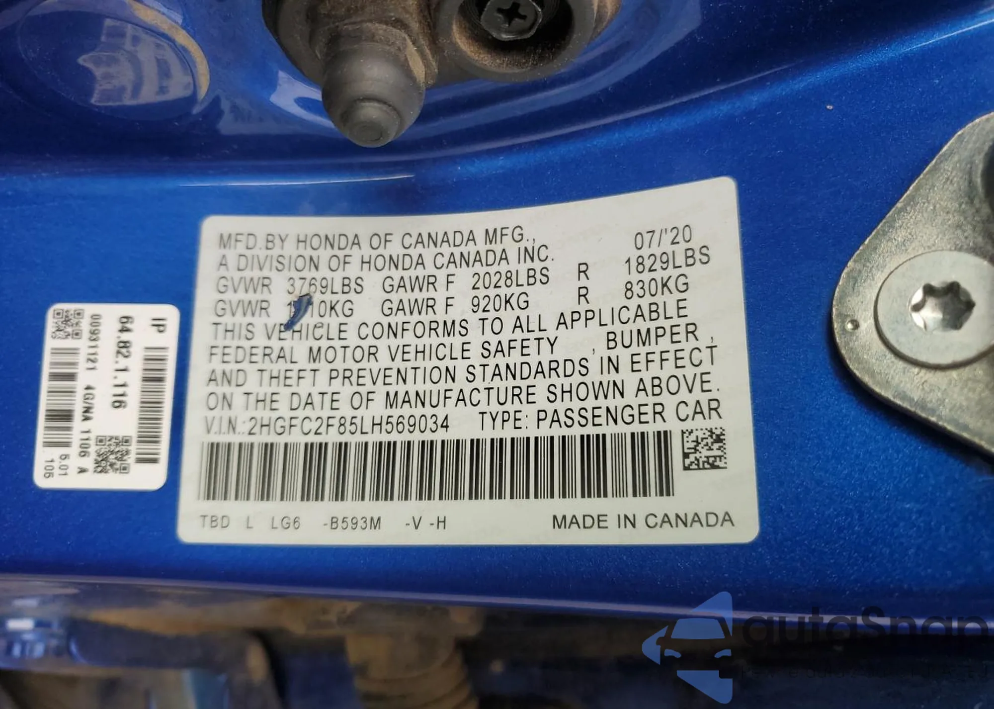 LOT: 82928464 VIN: 2HGFC2F85LH569034