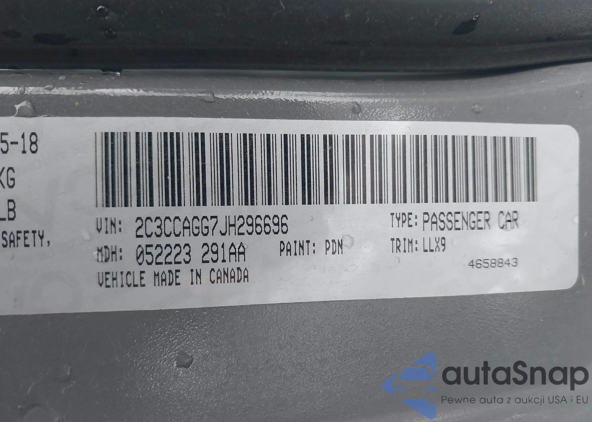 • VIN 2C3CCAGG7JH296696