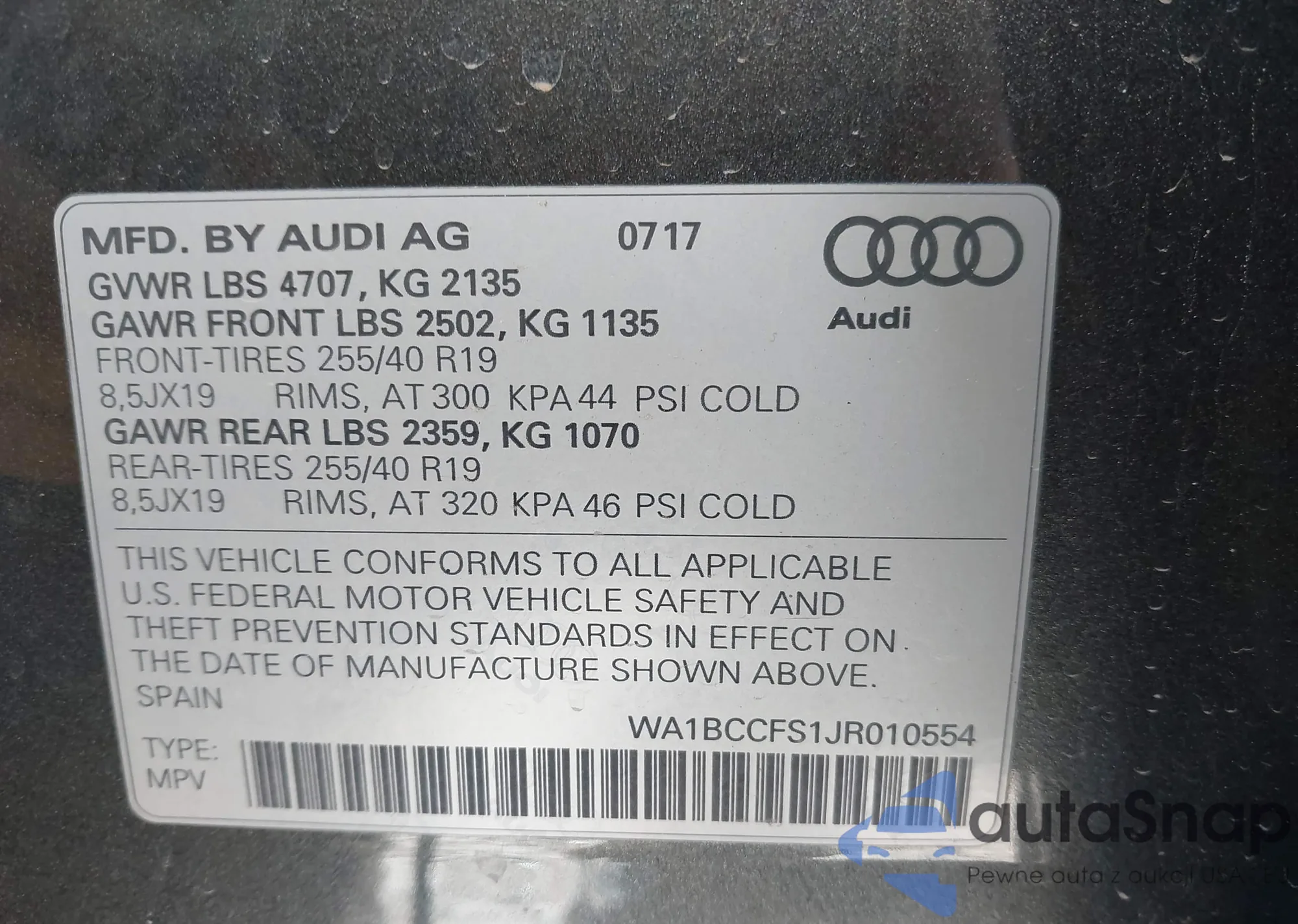 • VIN WA1BCCFS1JR010554