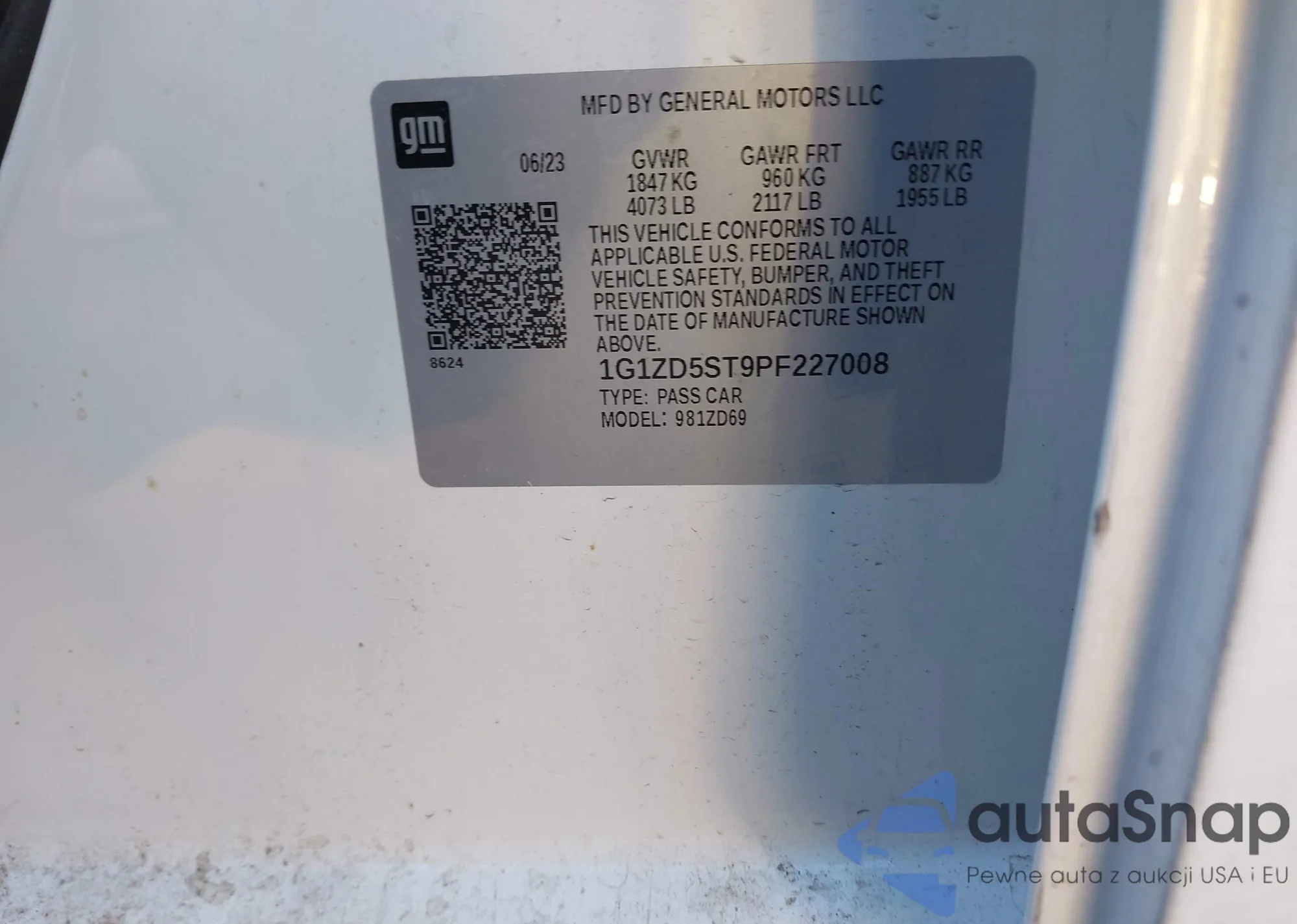 LOT: 41830871 VIN: 1G1ZD5ST9PF227008