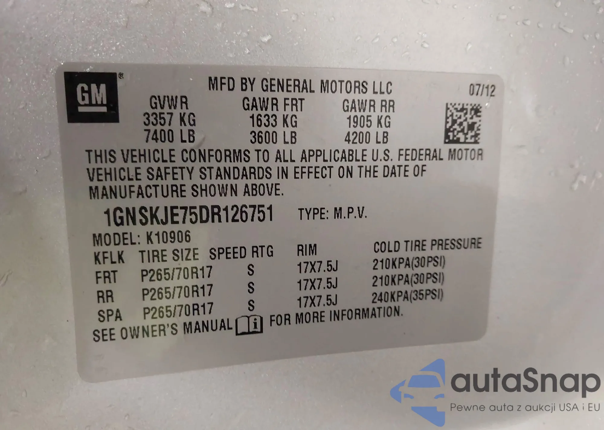 • VIN 1GNSKJE75DR126751