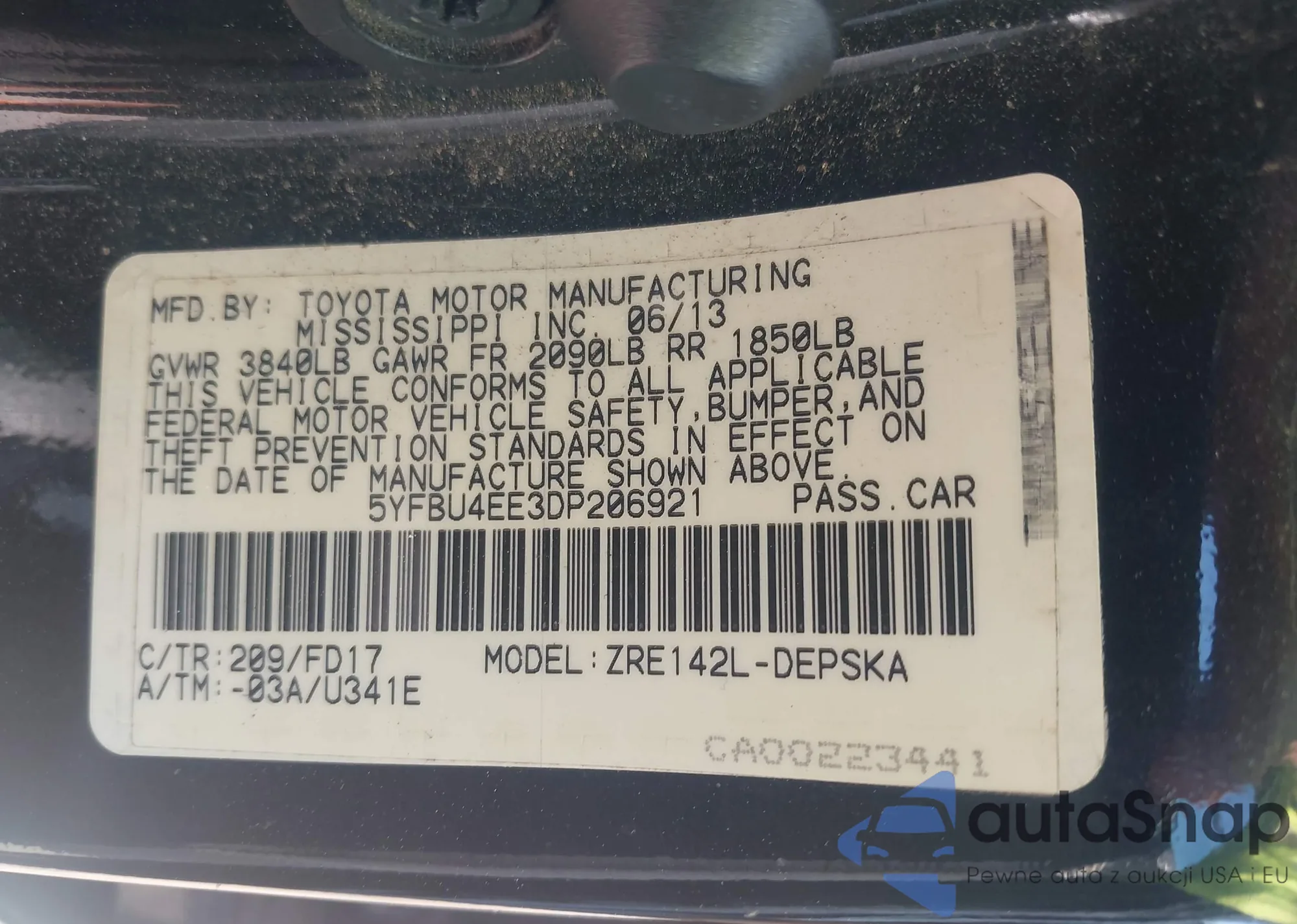 • VIN 5YFBU4EE3DP206921