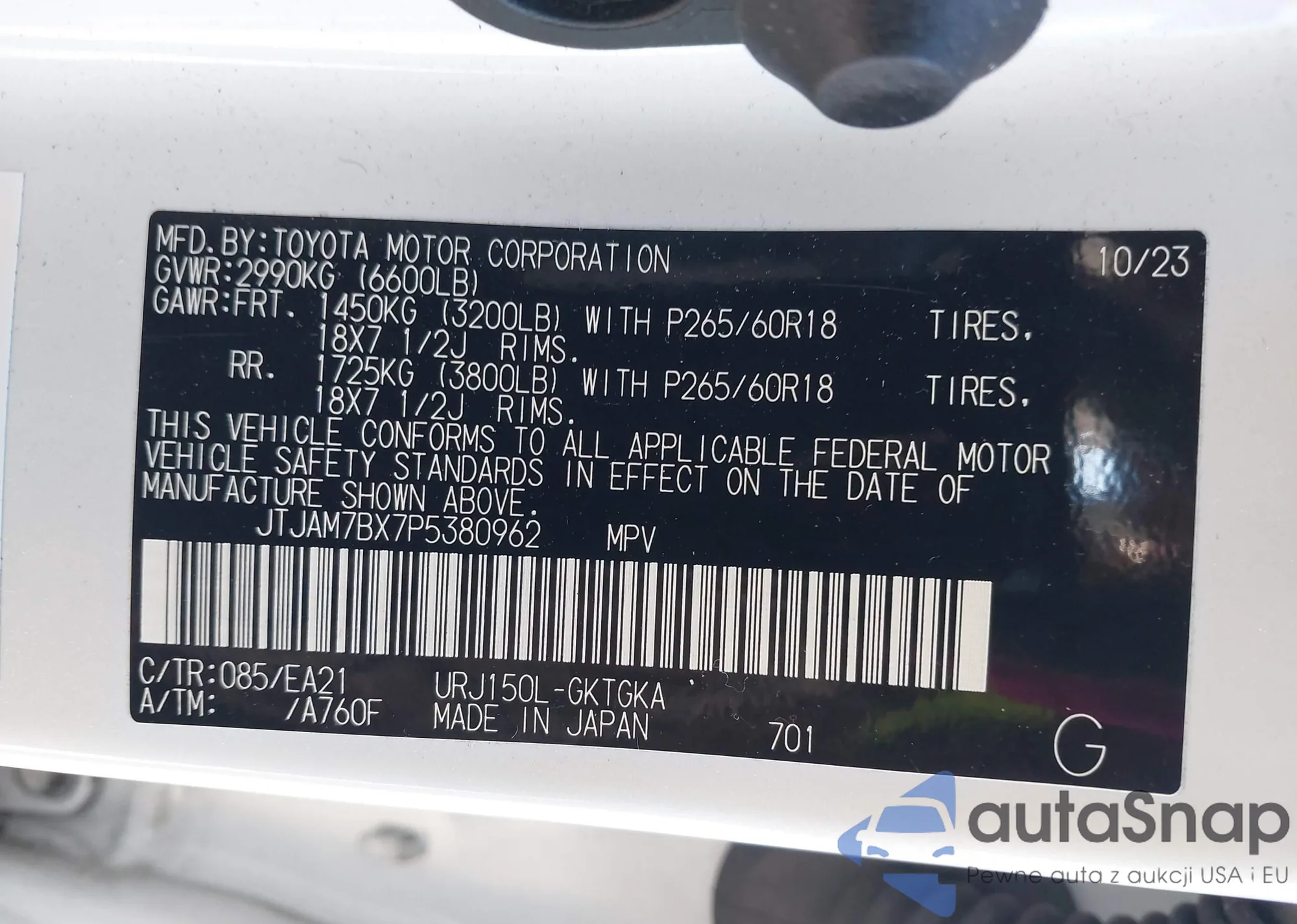 LOT: 41395773 VIN: JTJAM7BX7P5380962