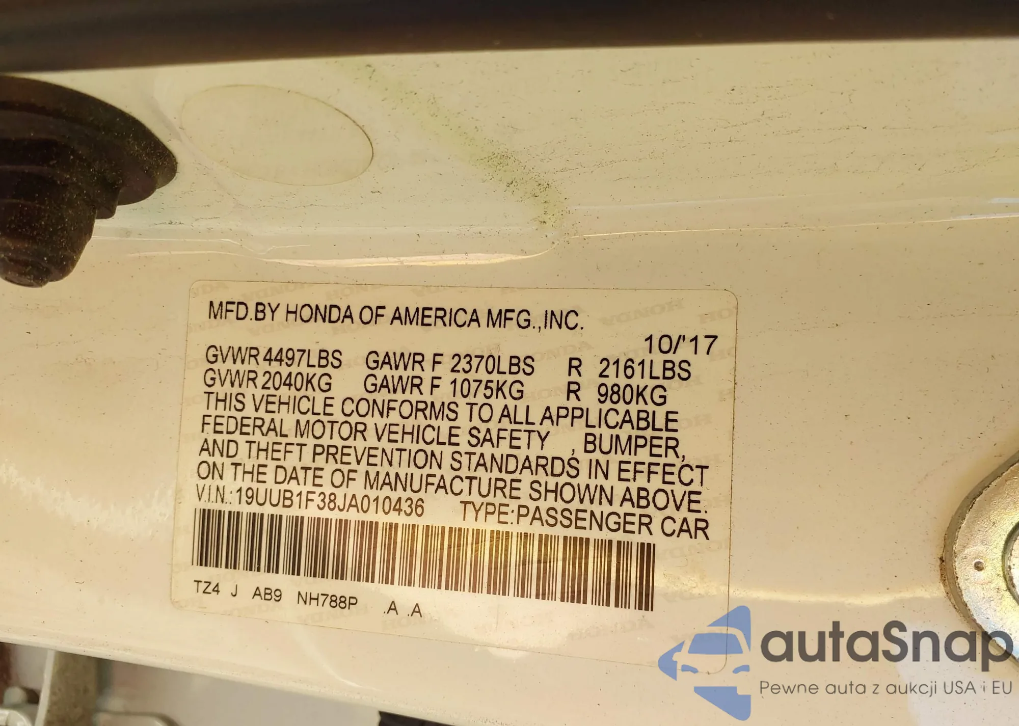 • VIN 5J6RW2H22ML015332