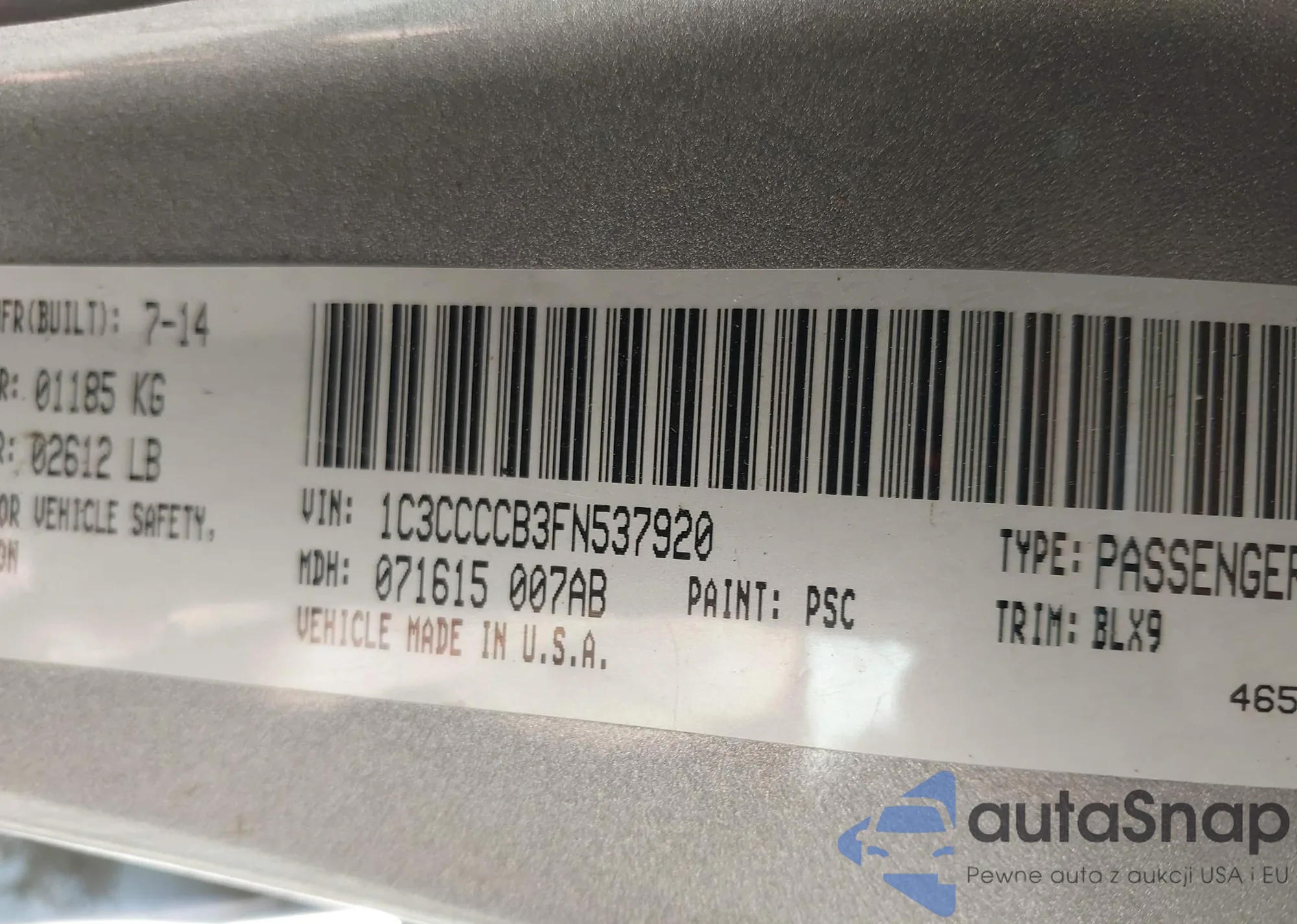 LOT: 41852813 VIN: 1C3CCCCB3FN537920