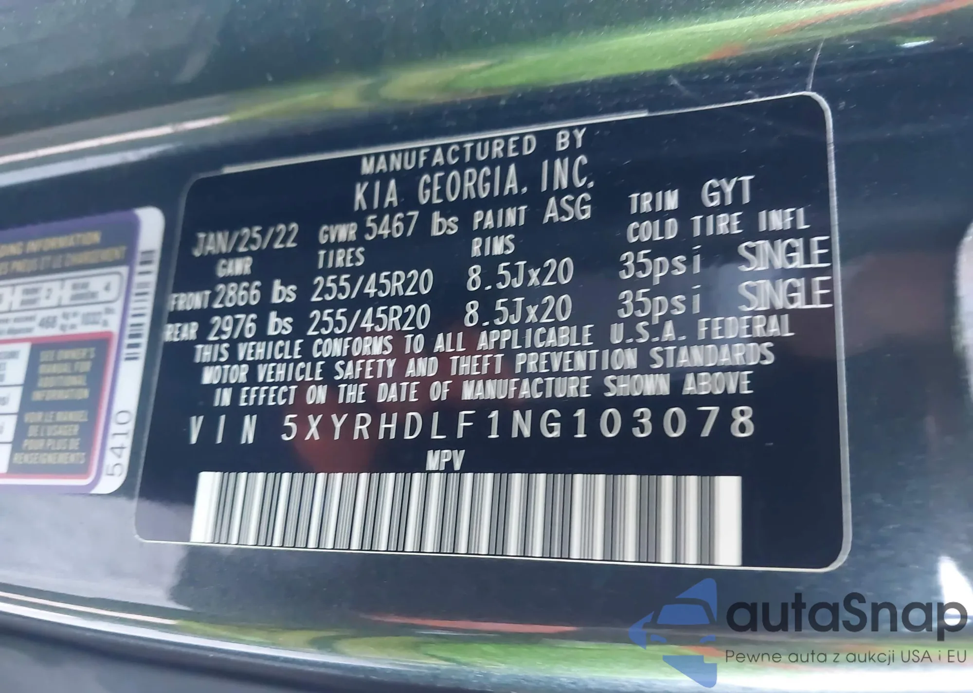 • VIN 5XYRHDLF1NG103078