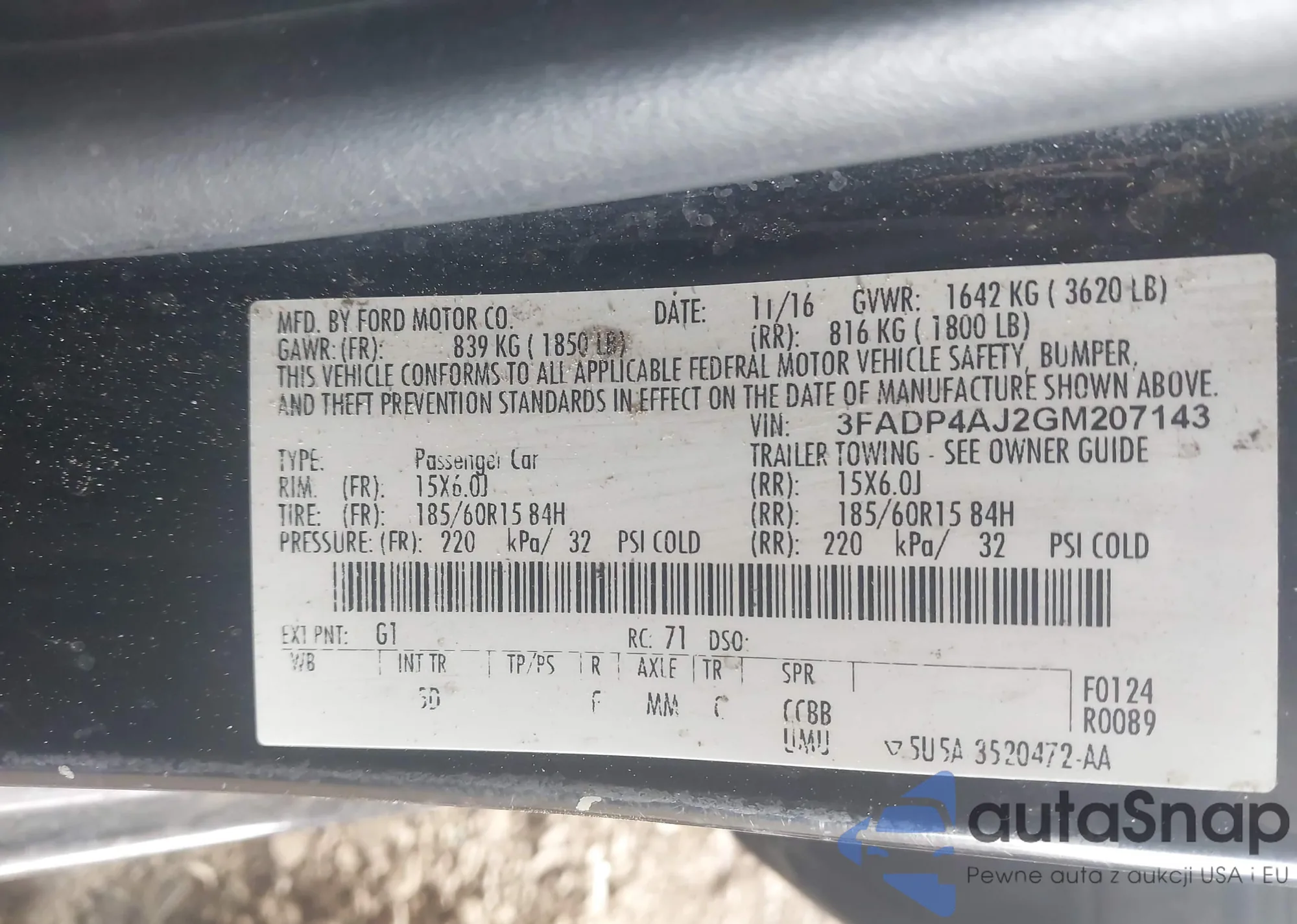 LOT: 41546506 VIN: 3FADP4AJ2GM207143