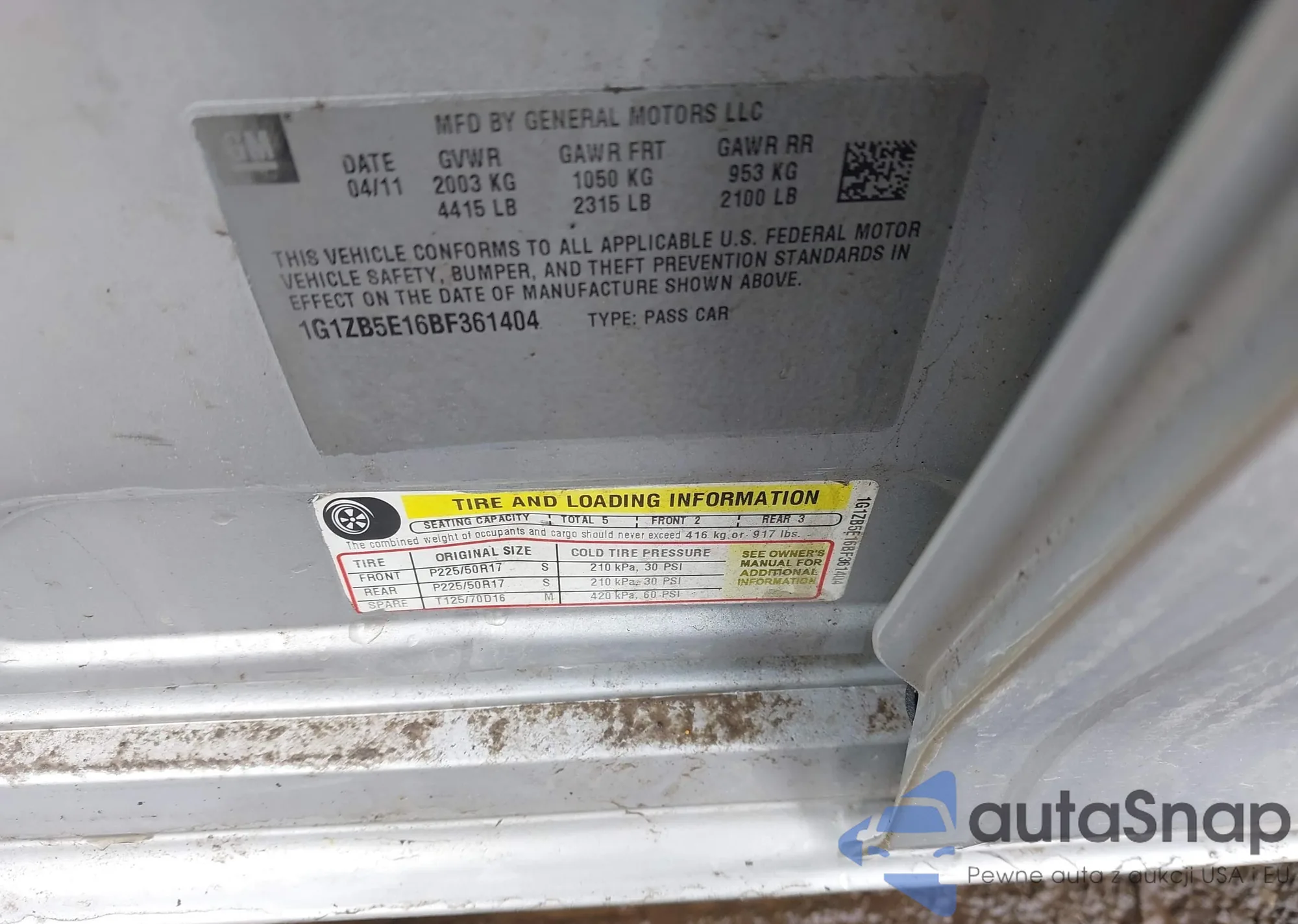 • VIN 1G1ZB5E16BF361404