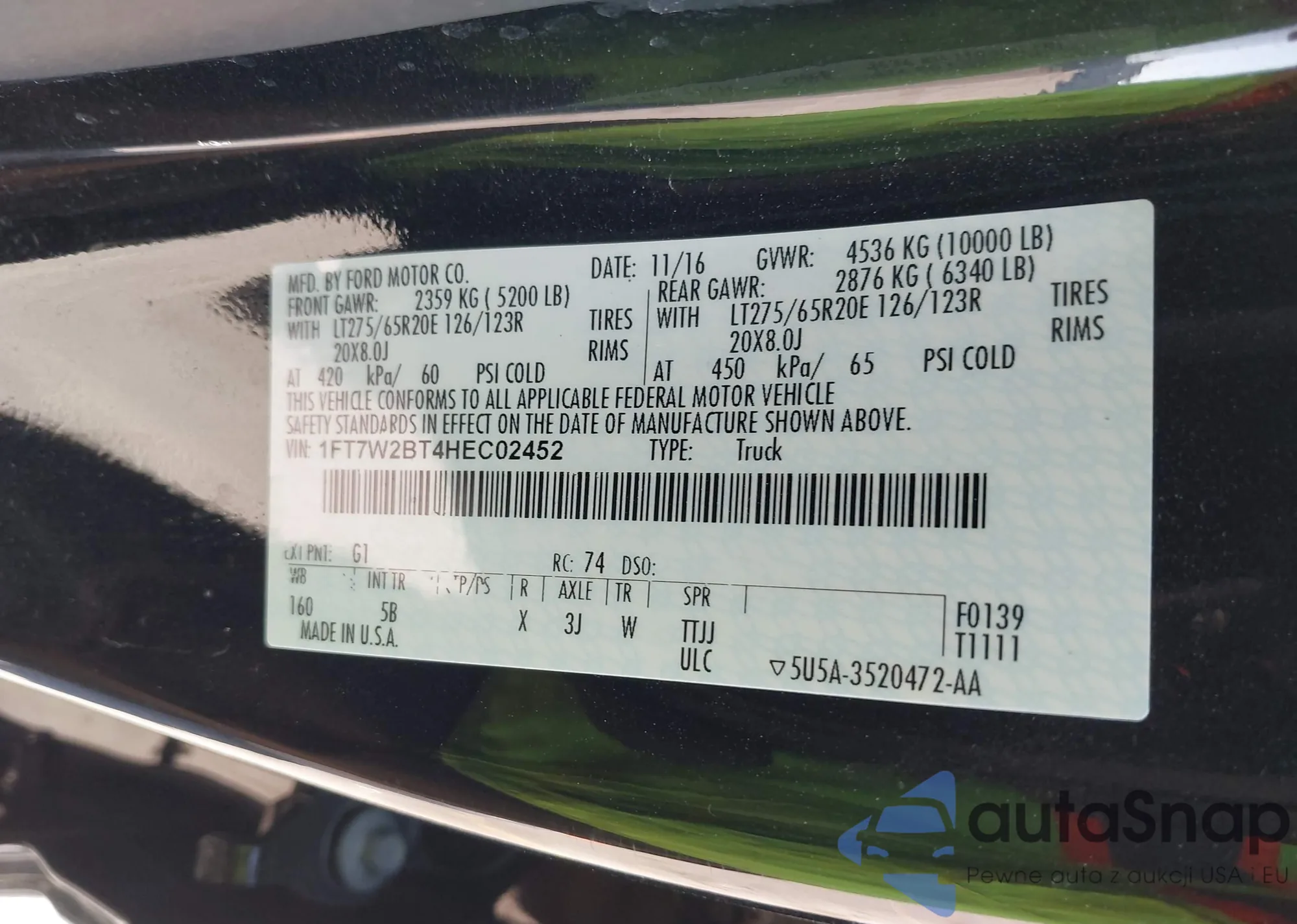 • VIN 1FT7W2BT4HEC02452
