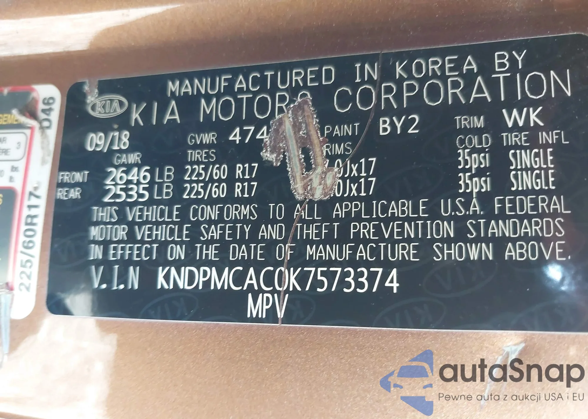 • VIN KNDPMCAC0K7573374