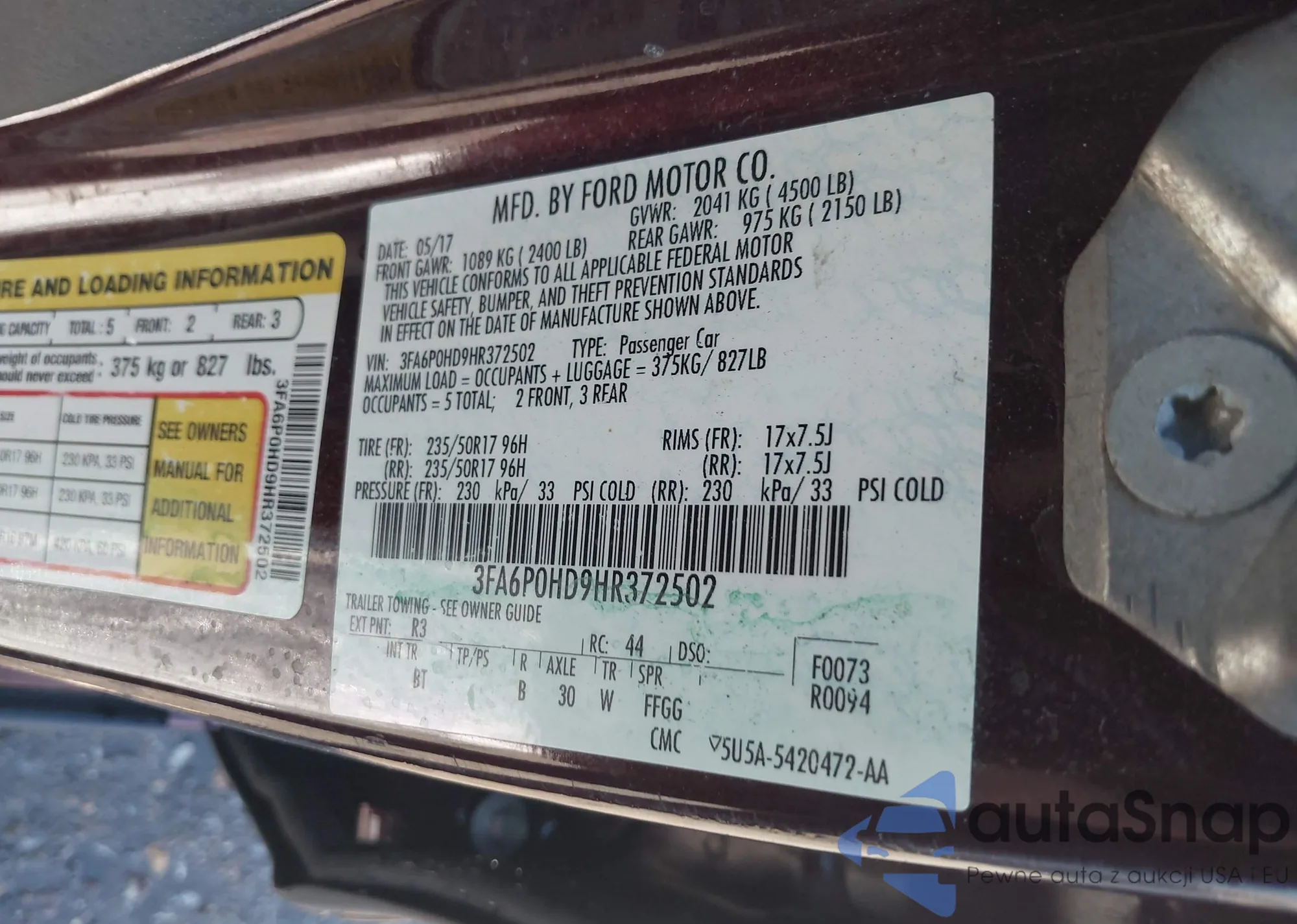 • VIN 3FA6P0HD9HR372502