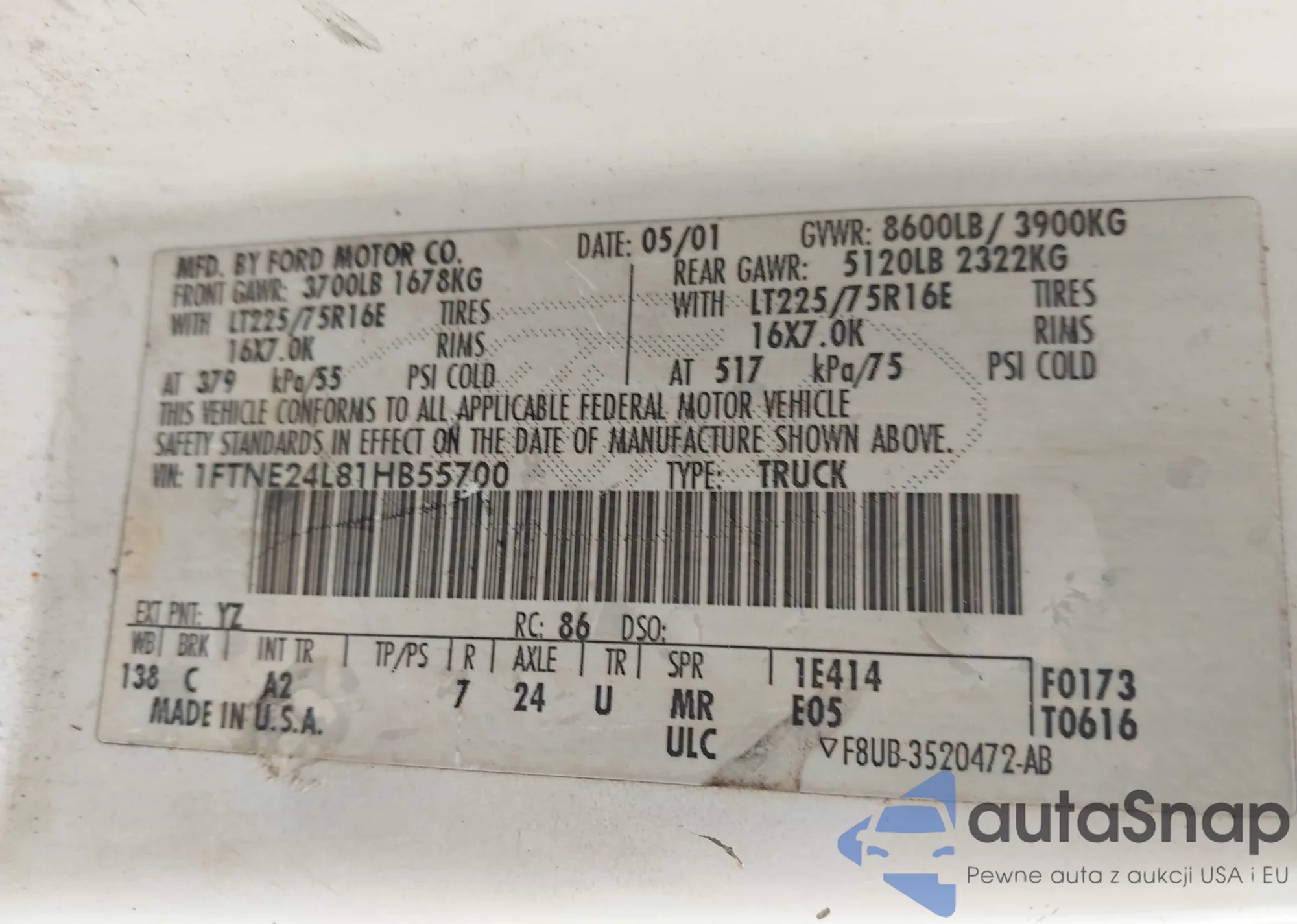 LOT: 41896291 VIN: 1FTNE24L81HB55700