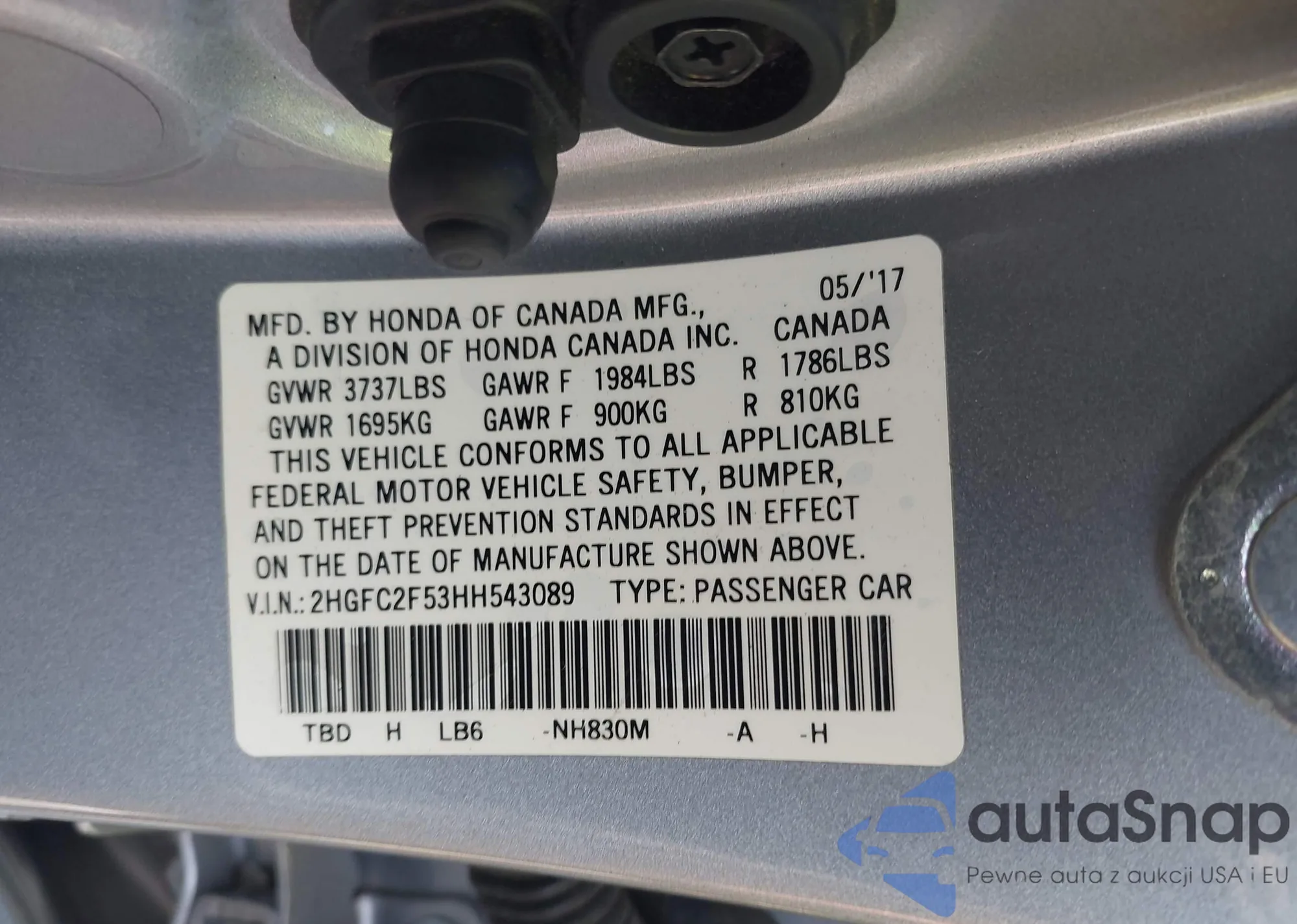 • VIN 2HGFC2F53HH543089