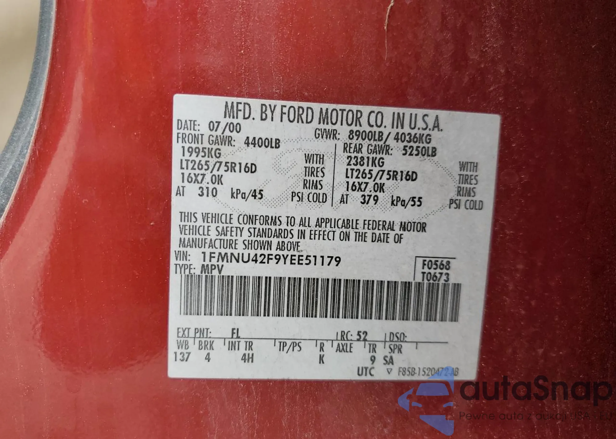 • VIN 1FMNU42F9YEE51179