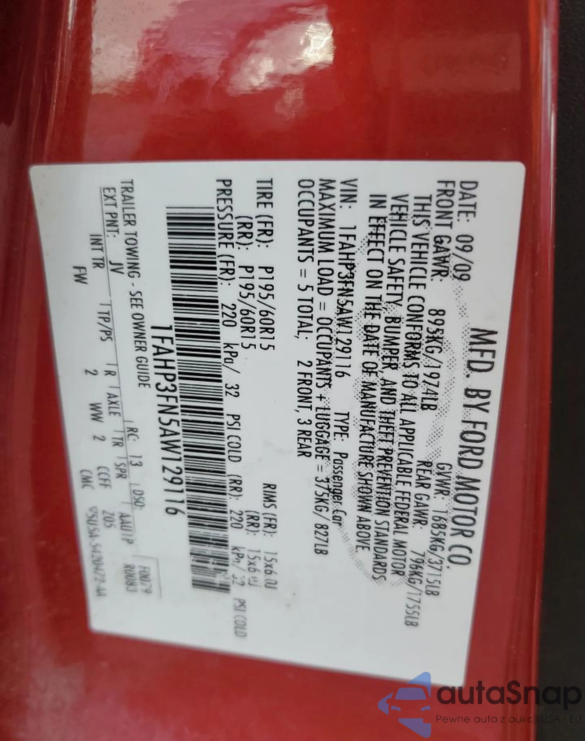 • VIN 1FAHP3FN5AW129116