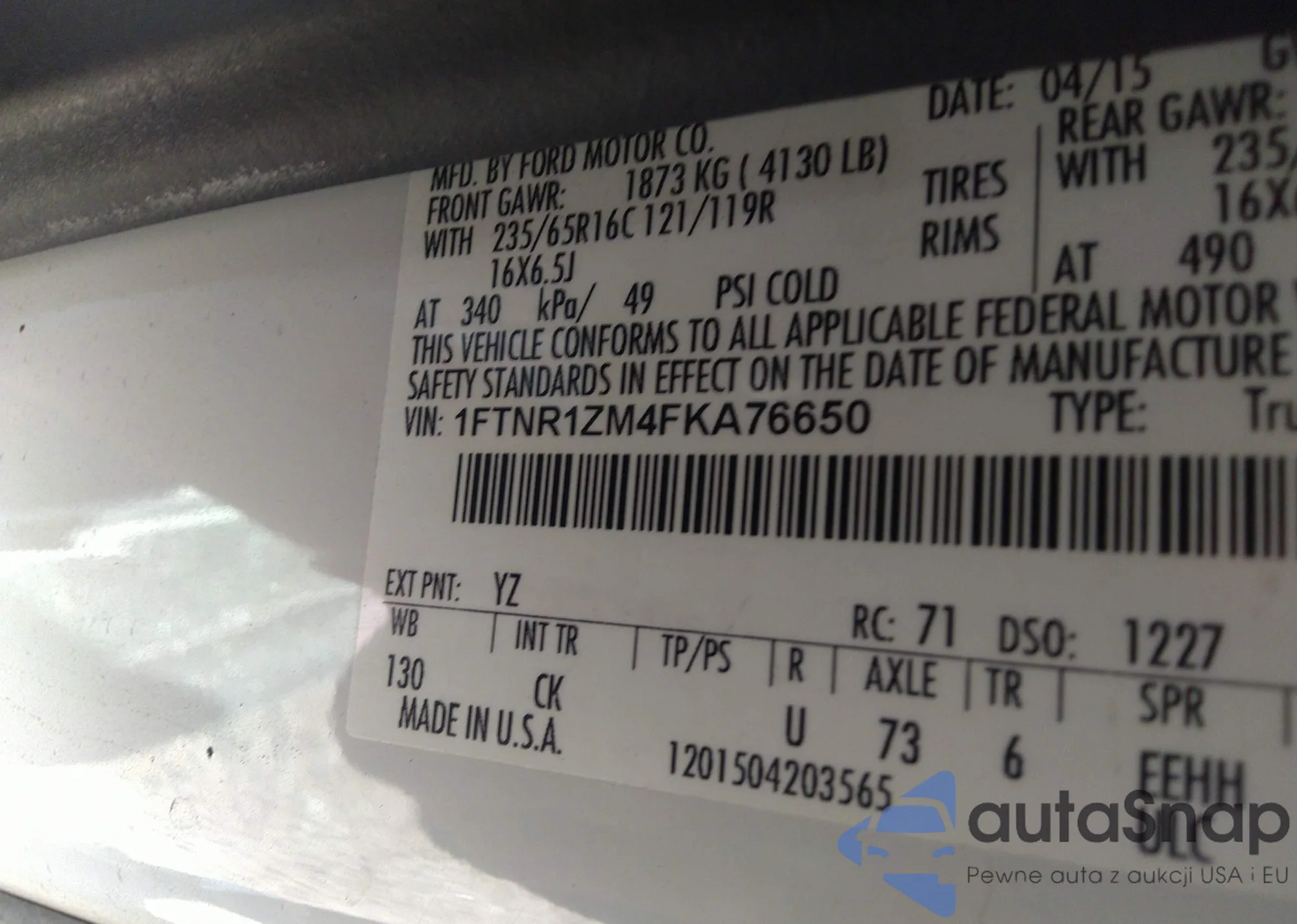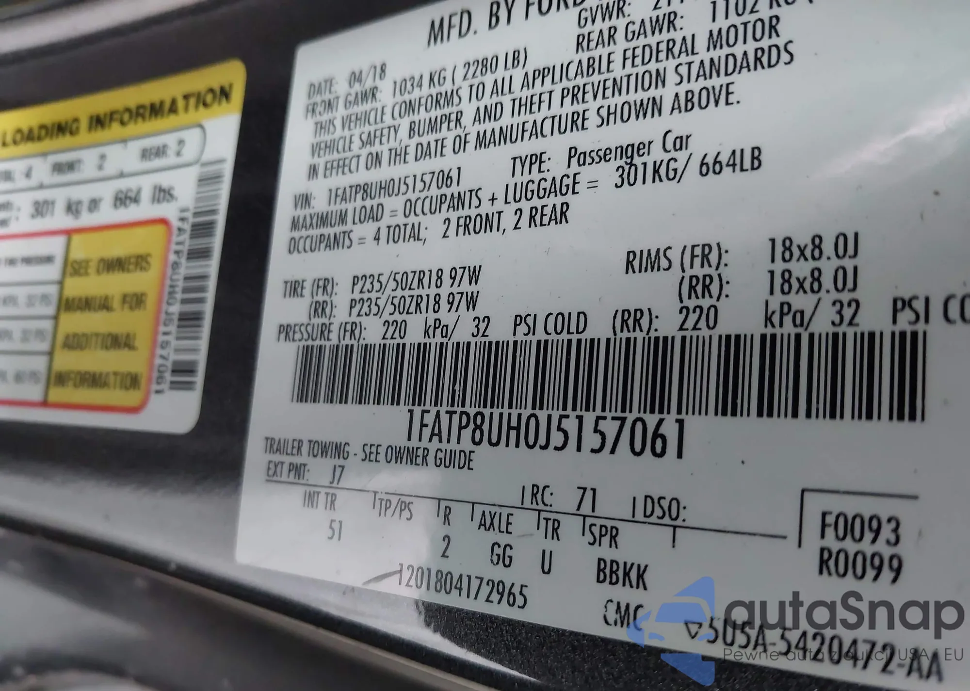 LOT: 41159095 VIN: 1FATP8UH0J5157061