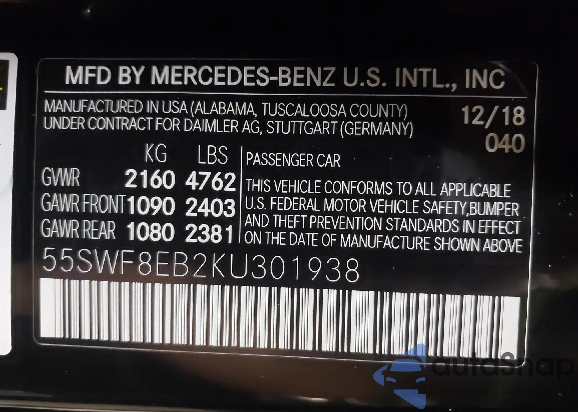 • VIN 55SWF8EB2KU301938