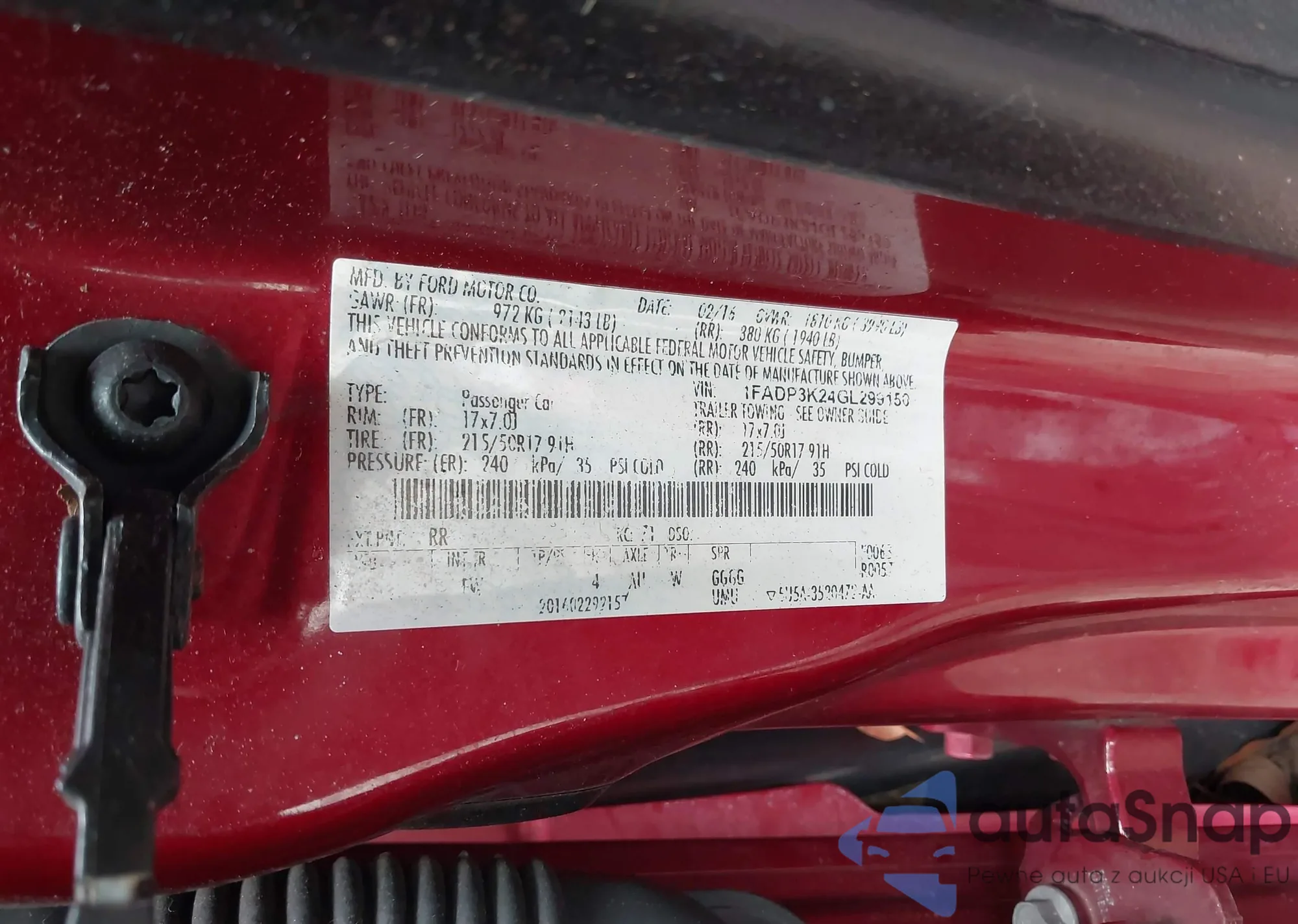 • VIN 1FADP3K24GL299150