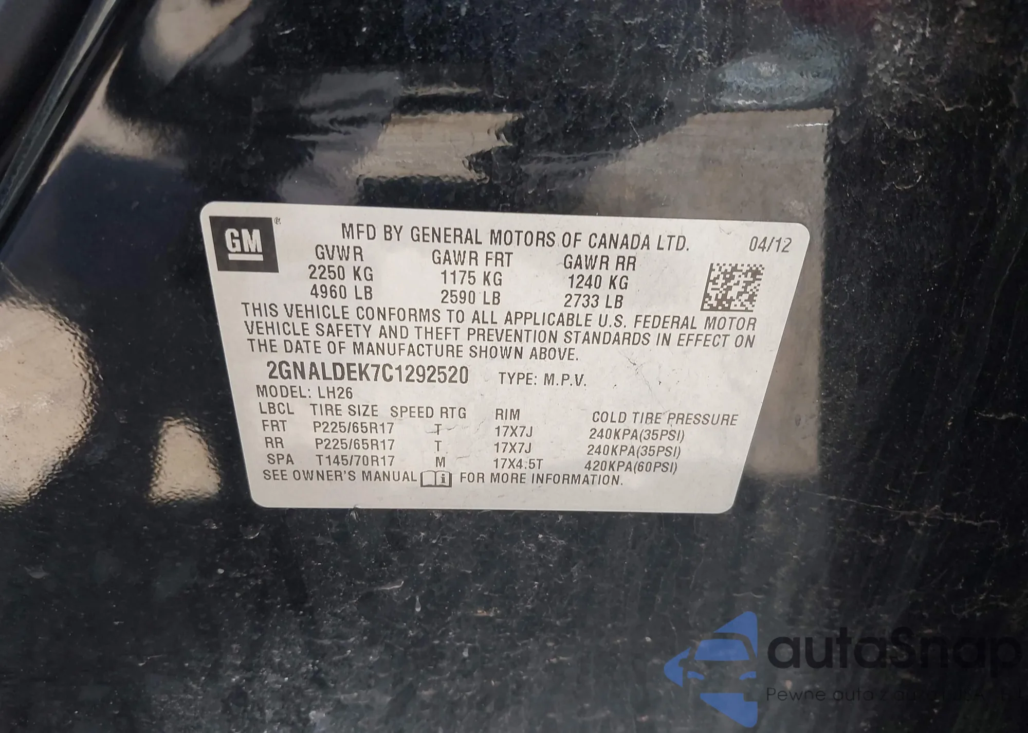 • VIN 2GNALDEK7C1292520